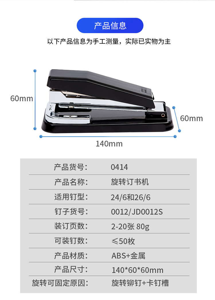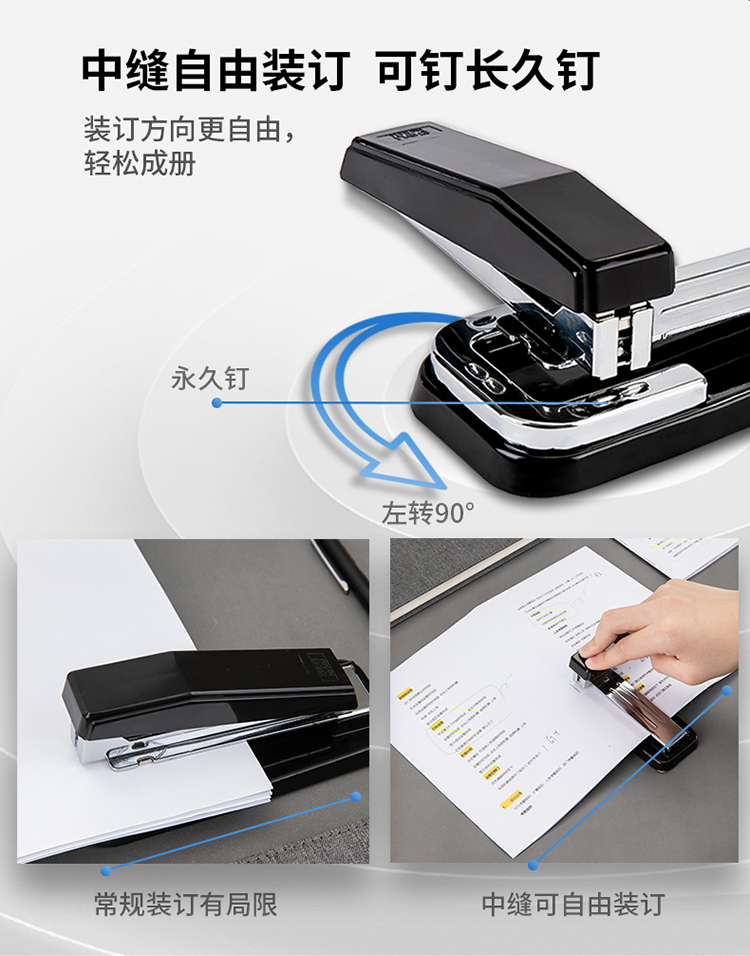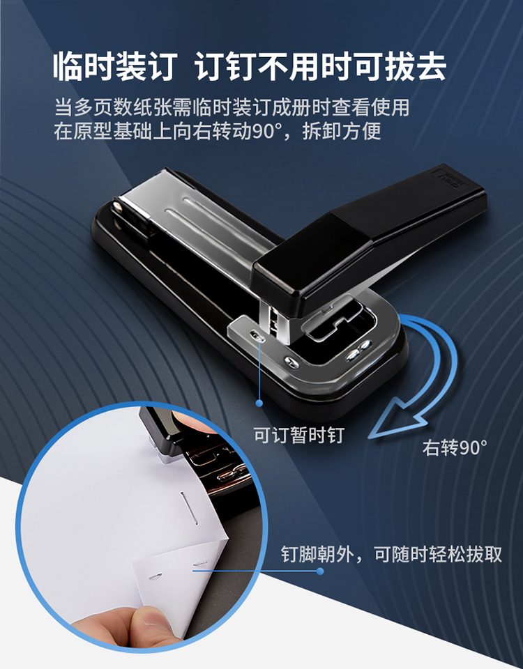 商品名称:得力(deli)12#旋转式订书机/订书器 中缝装订 临时装订可拆 办公用品 黑色0414