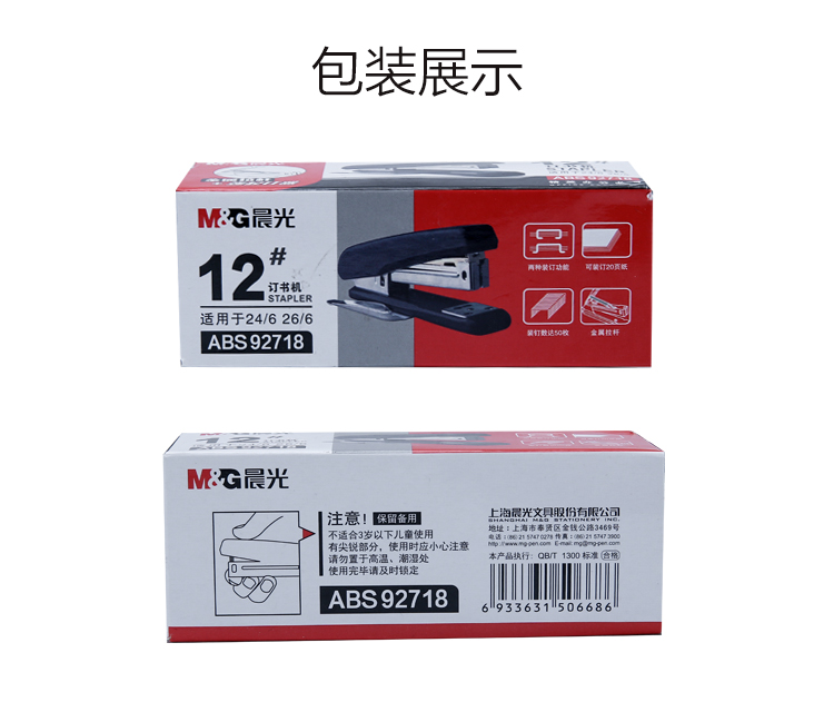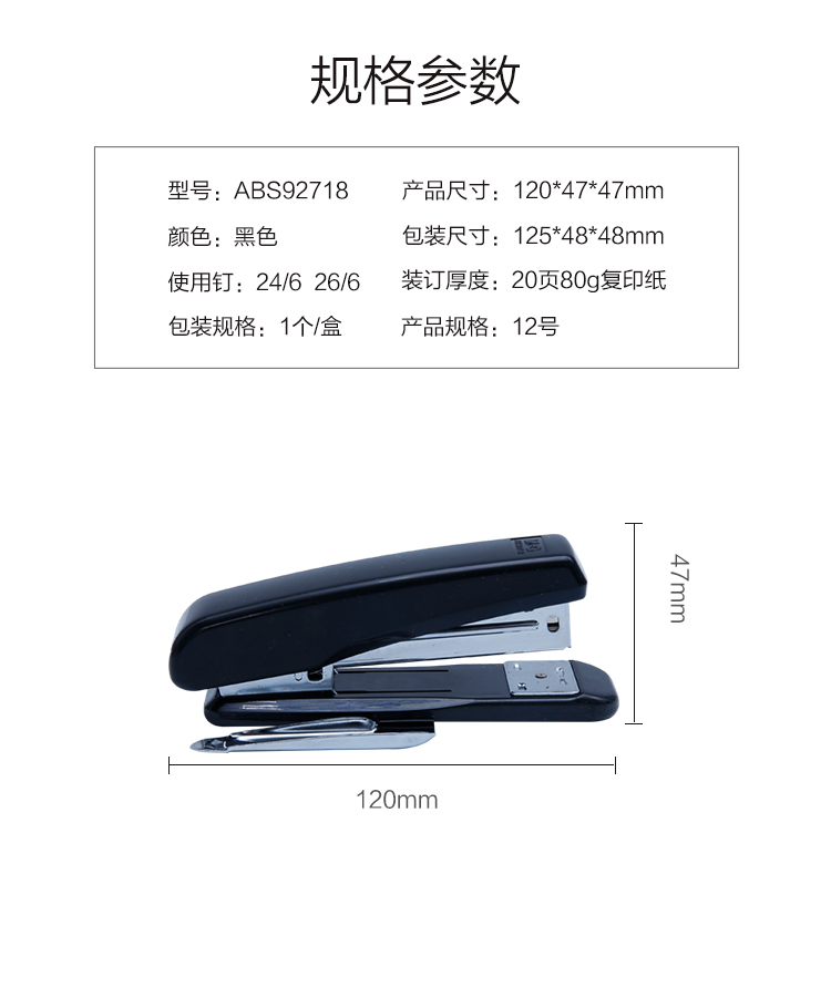 商品名称:晨光(M&G)文具12#黑色订书机 侧带起钉器订书器 办公用品 单个装ABS92718