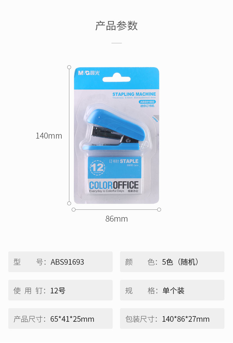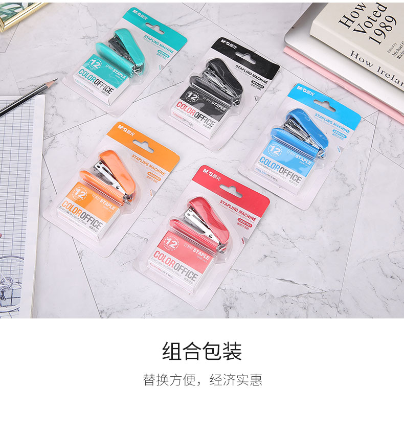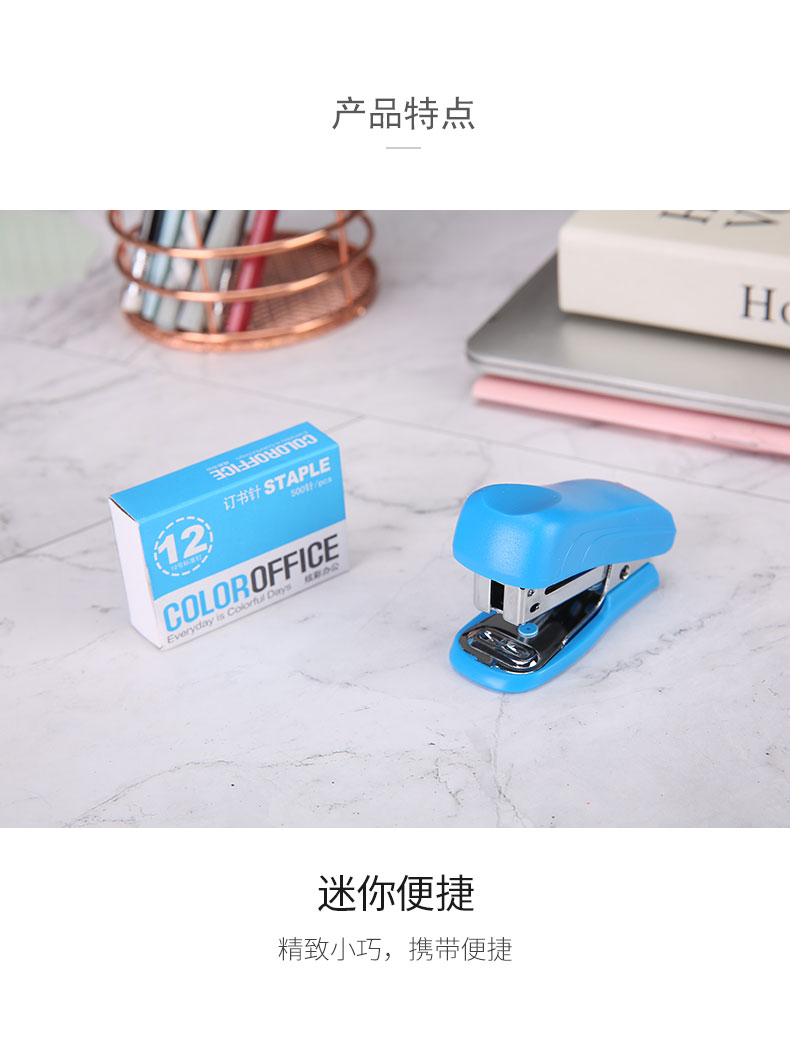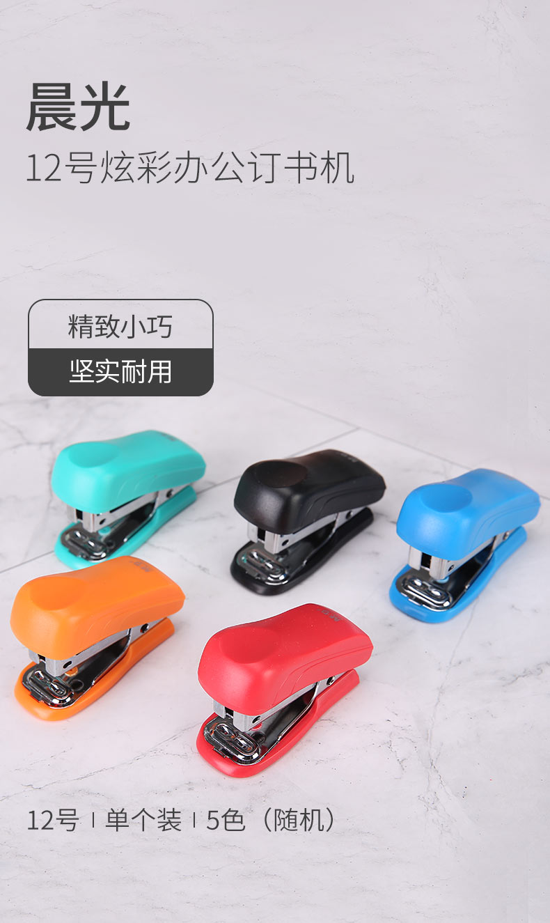 商品名称:晨光(M&G)文具12#便携订书机 学生省力订书器 炫彩办公系列小型订书机 单个装颜色随机ABS91693