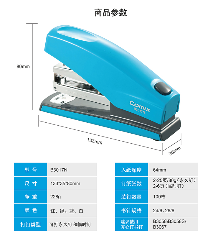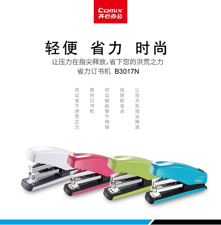商品名称:齐心(Comix)省力型订书机/订书器 12# 白 B3017N