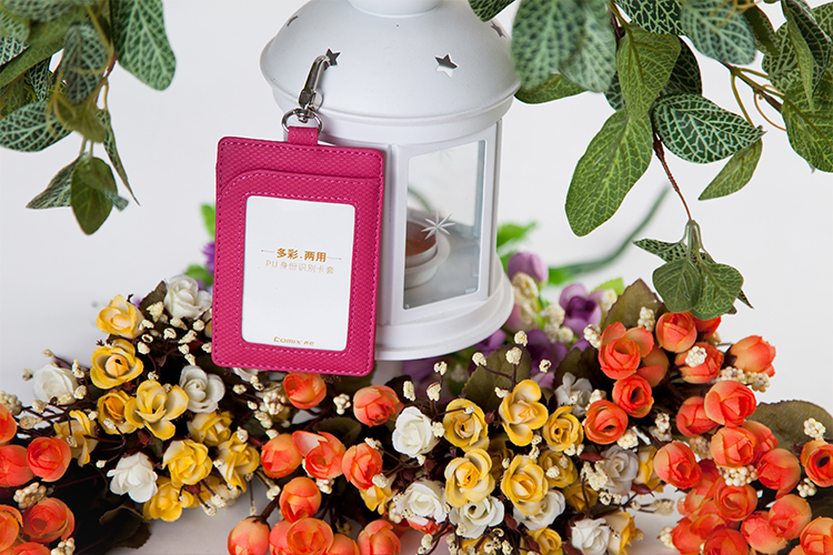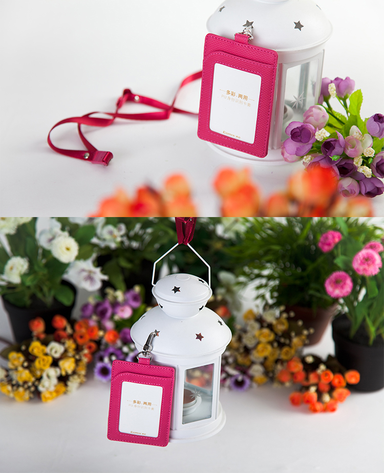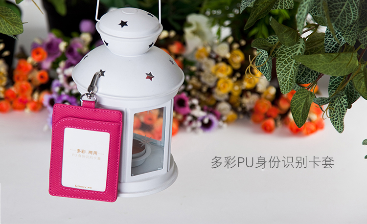 齐心(Comix) A7928 多彩竖式两用PU身份识别卡套/工作证/证件卡 玫红色