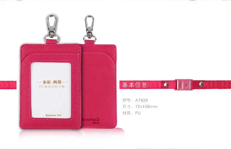 商品名称:齐心(Comix) A7928 多彩竖式两用PU身份识别卡套/工作证/证件卡 玫红色