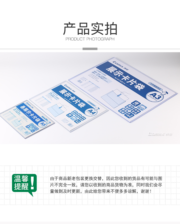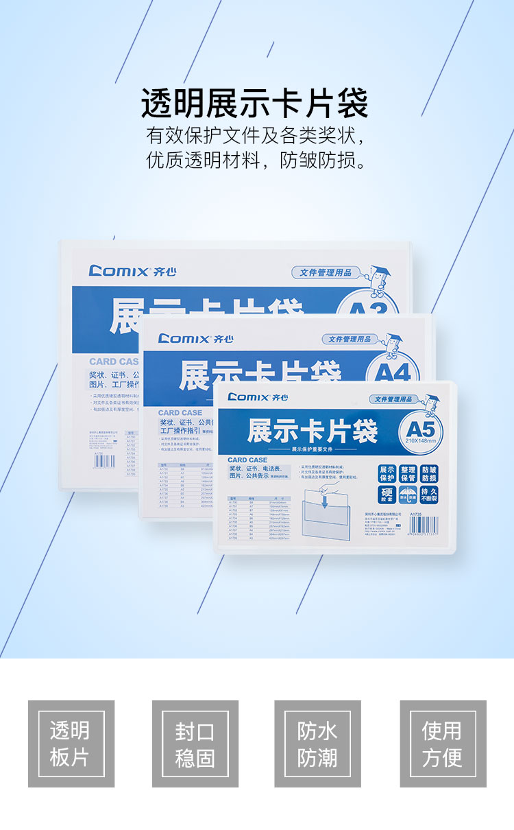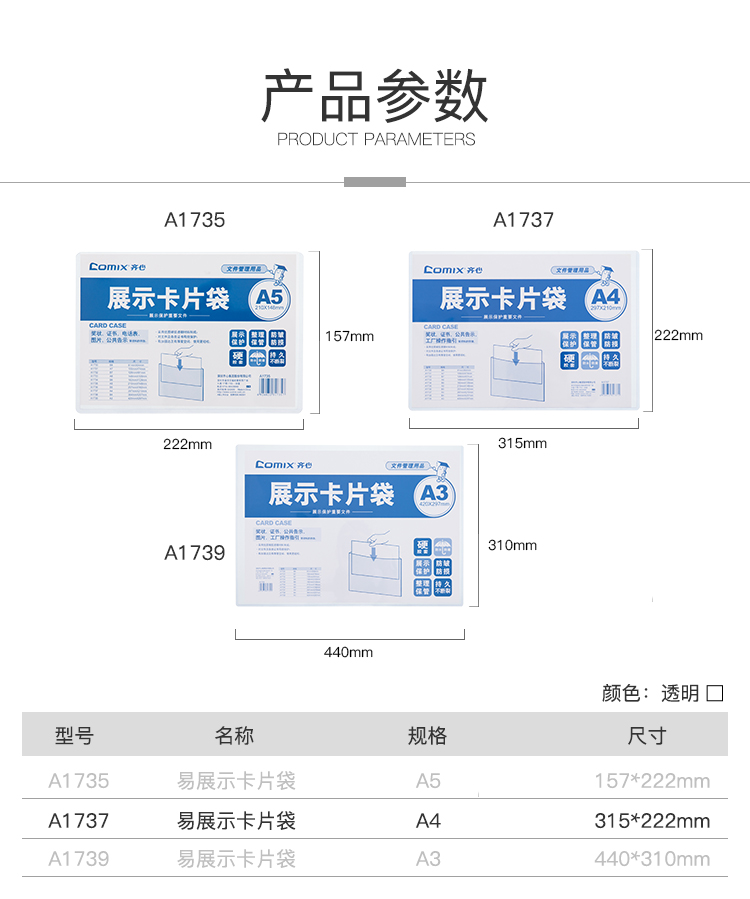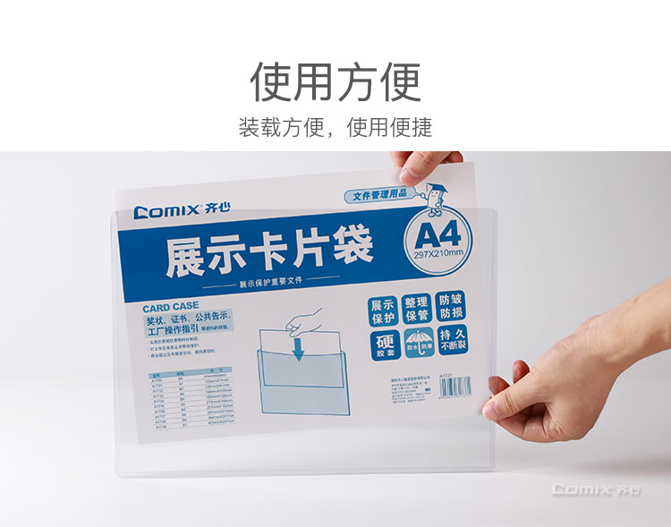 商品名称:齐心(Comix) A1737 易展示卡片袋 A4 硬质 营业执照副本保护套