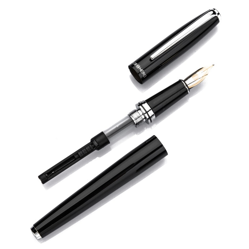 英雄(HERO)黑色铱金钢笔墨水笔明尖 373