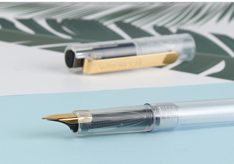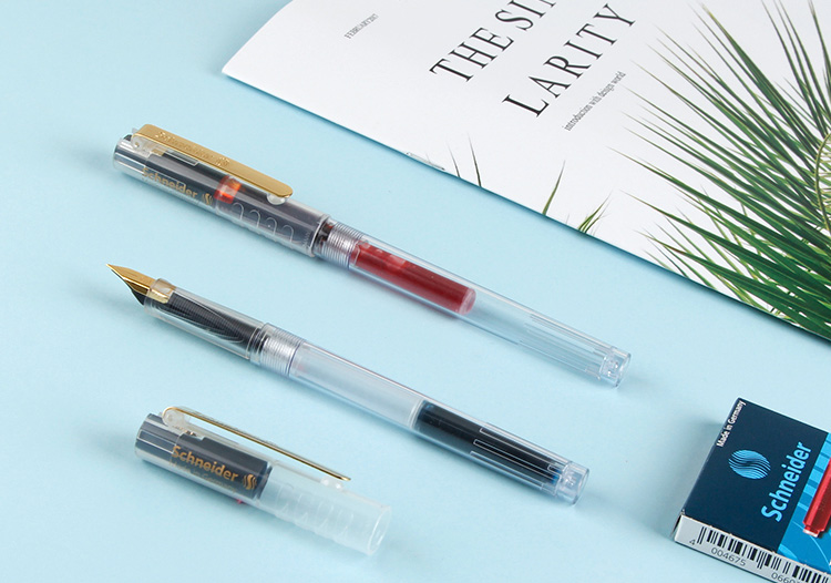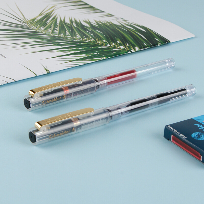 德国施耐德(Schneider)钢笔23K镀金笔尖金夹签字笔男女学生用成人练字笔特细EF尖BK406透明笔杆
