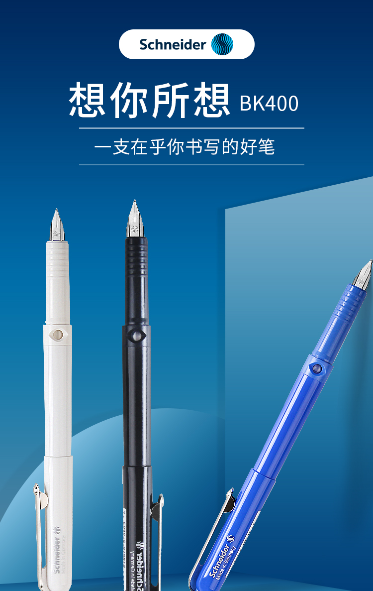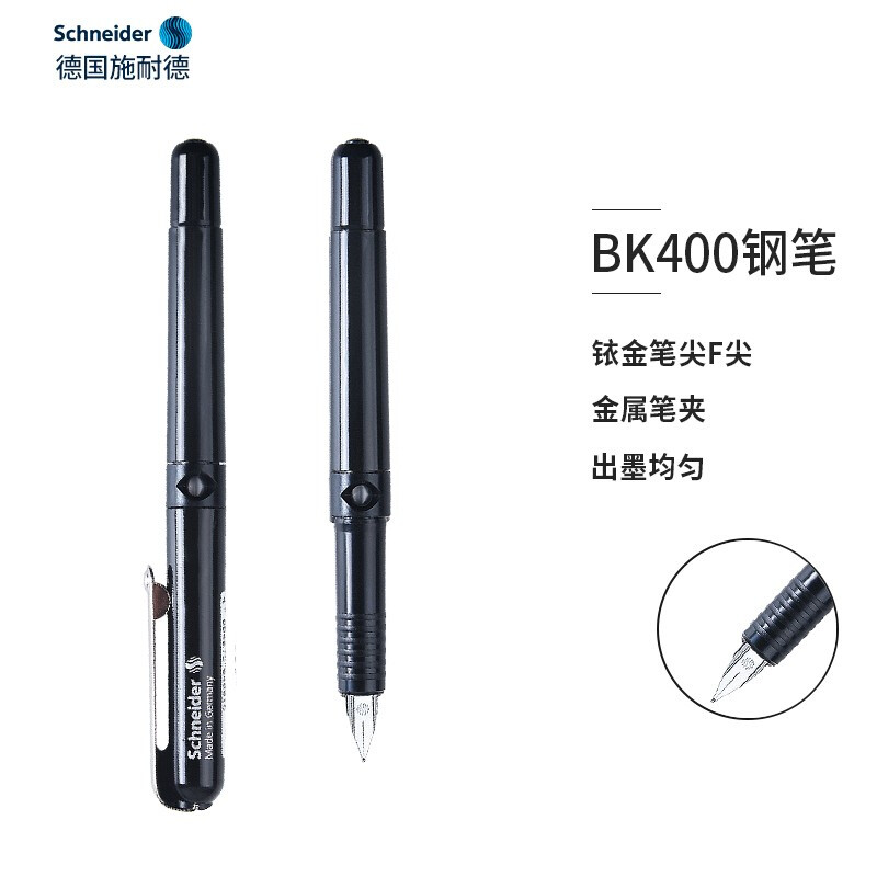 施耐德(Schneider)钢笔德国进口经典款男女士学生用成人练字笔签字笔墨水笔F尖BK400黑色单支装