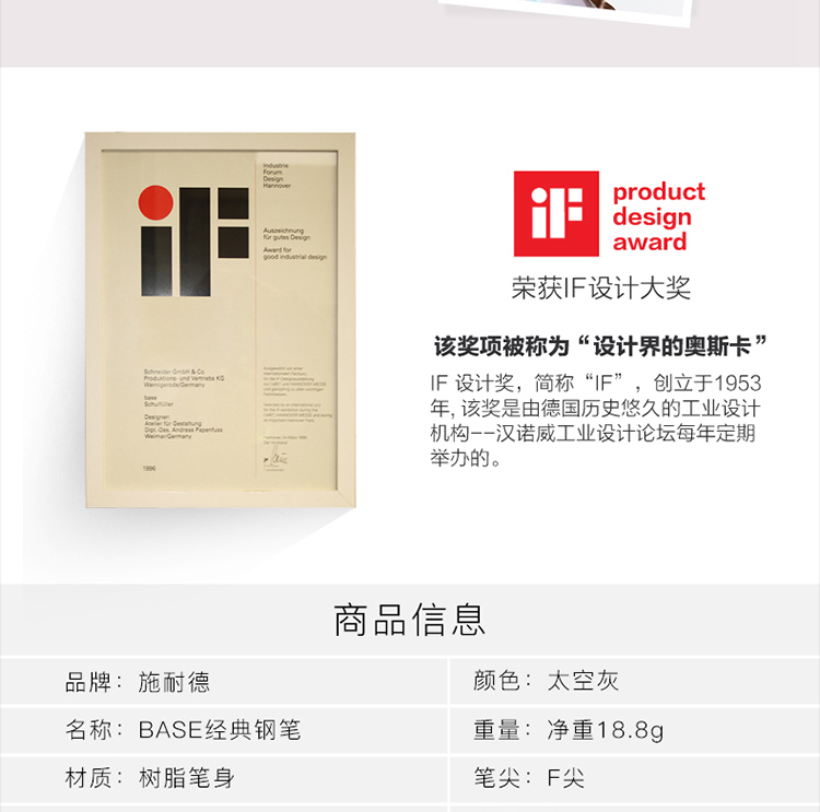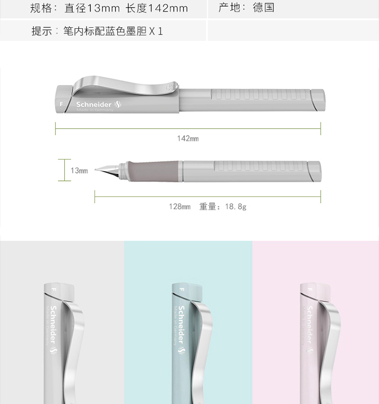 商品名称:施耐德(Schneider)钢笔德国进口经典Base系列男女学生用成人练字笔办公商务签字笔墨水笔F尖2017新色太空灰