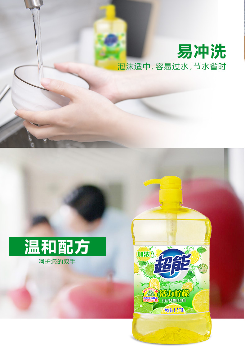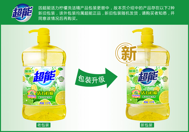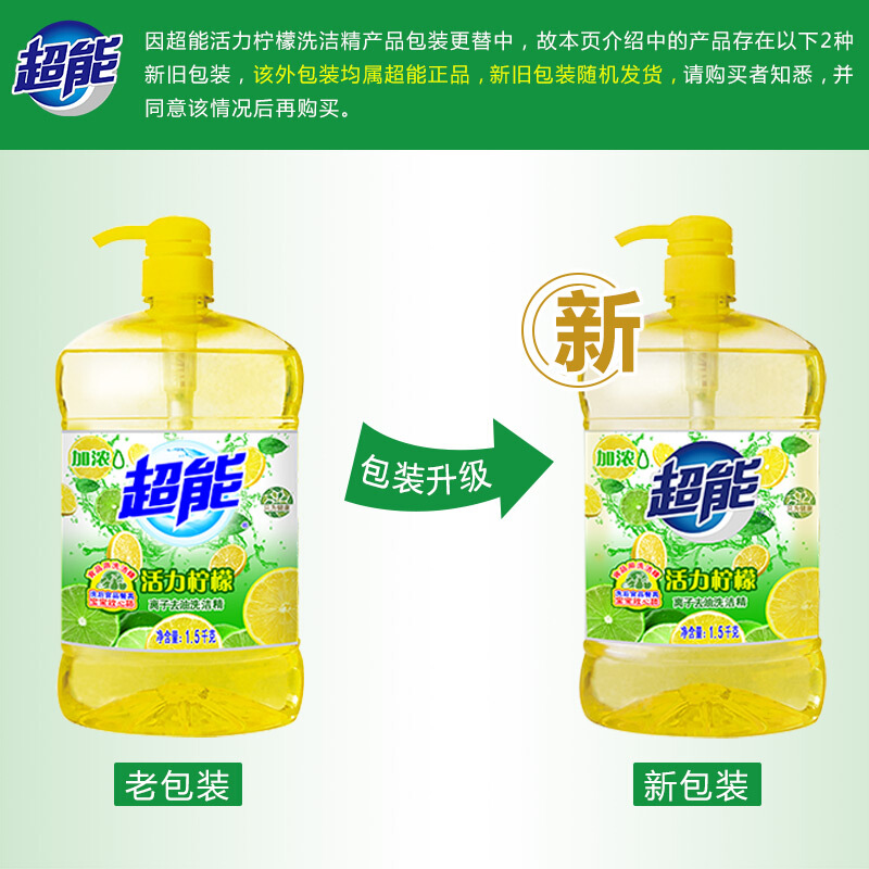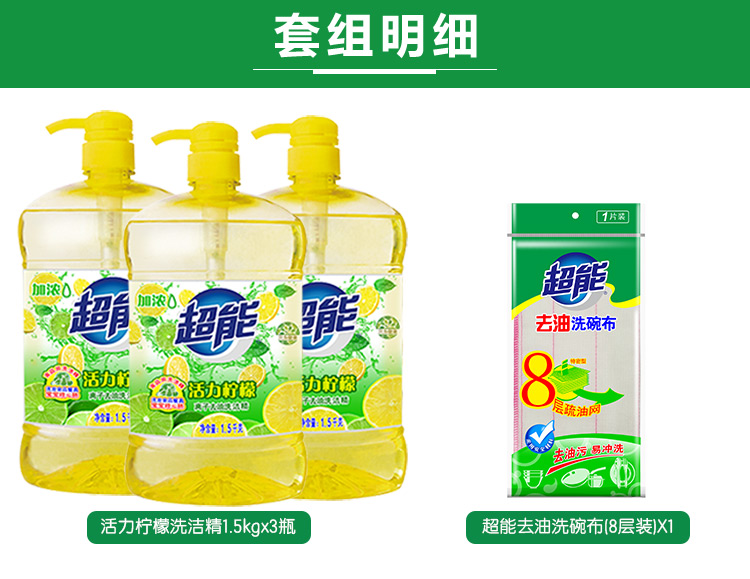商品名称:超能 活力柠檬洗洁精1.5kg*3加洗碗布 加浓去油无残留安全(新老包装随机发货)