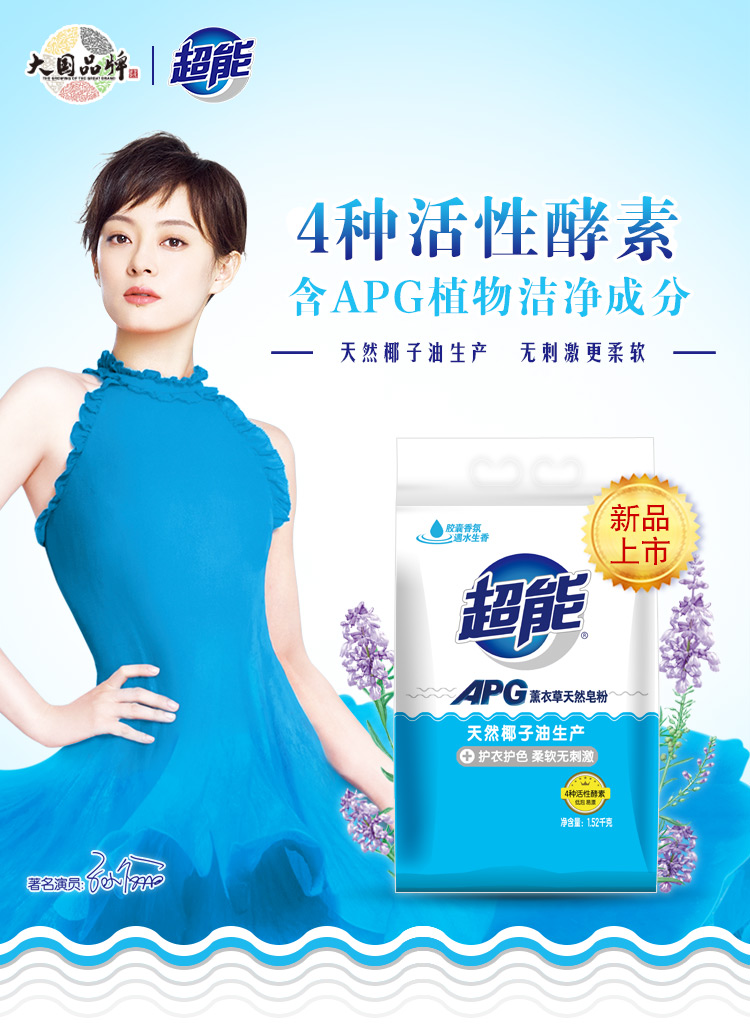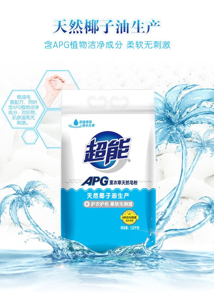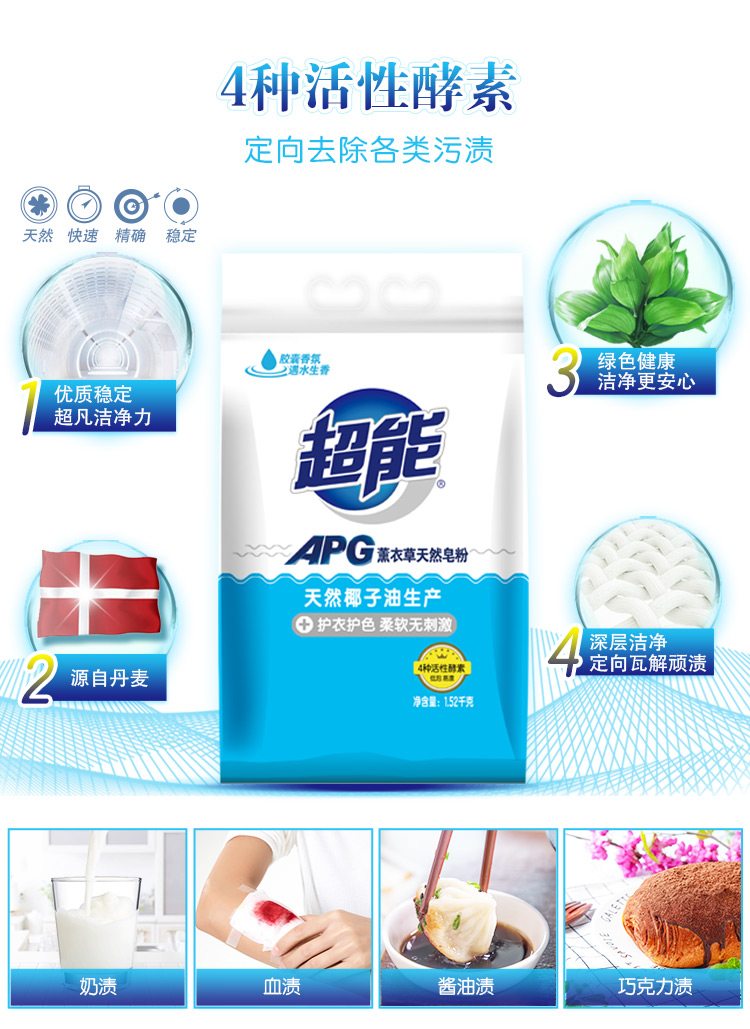 超能 APG薰衣草天然皂粉1.52kg 洗衣粉 孙俪同款 高品质国家专利apg配方加天然酵素去污(新老包装随机发)