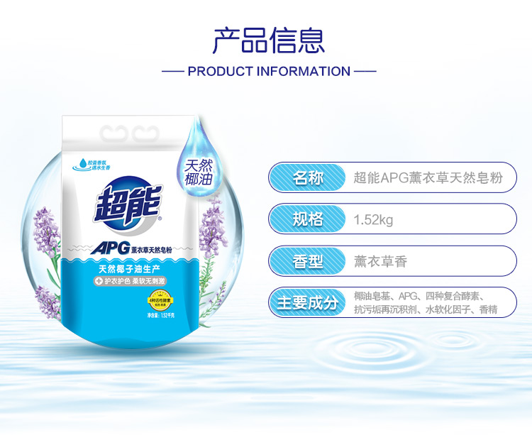 商品名称:超能 APG薰衣草天然皂粉1.52kg 洗衣粉 孙俪同款 高品质国家专利apg配方加天然酵素去污(新老包装随机发)