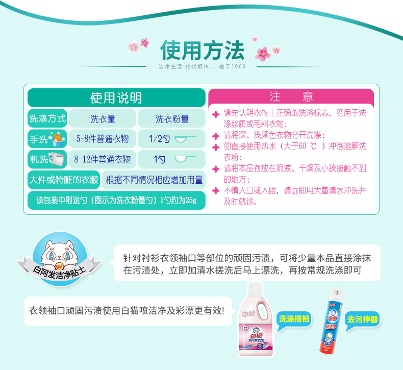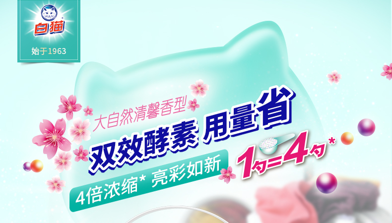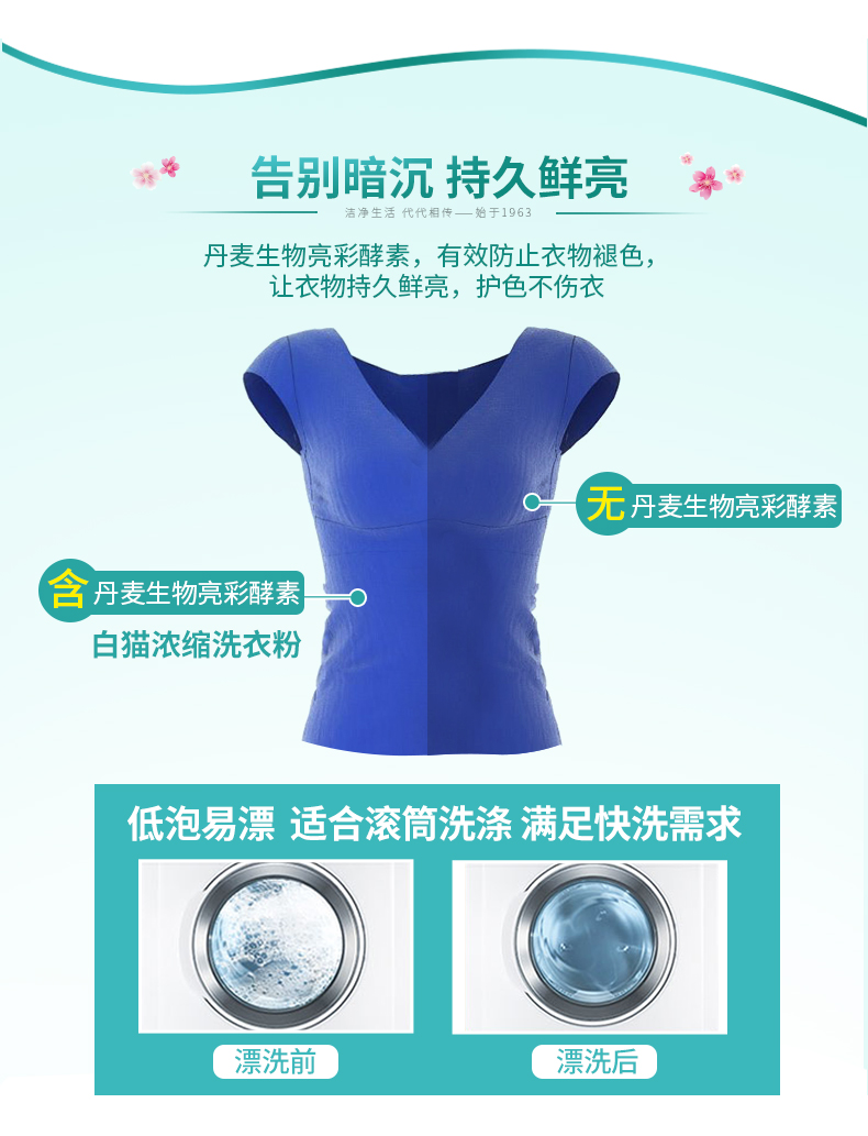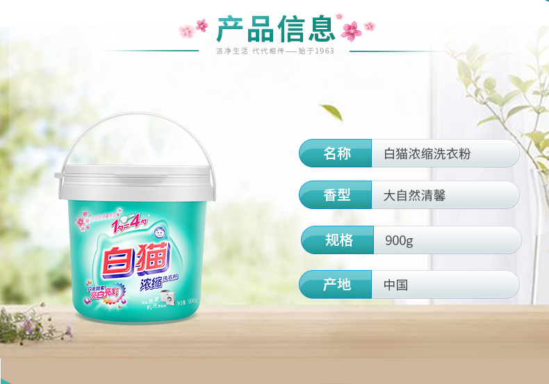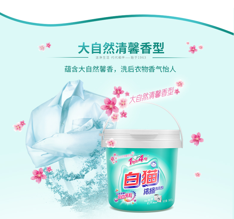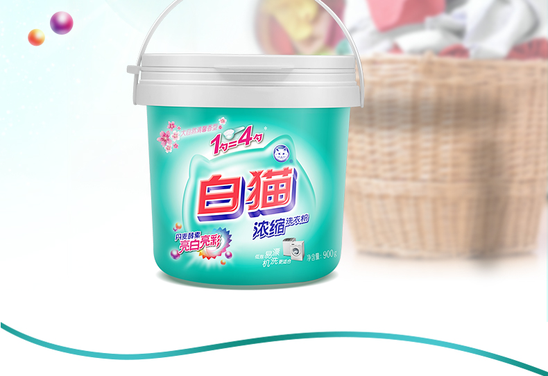 商品名称:白猫 新浓缩洗衣粉900g/桶 一勺等于四勺 丹麦进口生物酵素 翻盖式便取设计(内赠勺子)