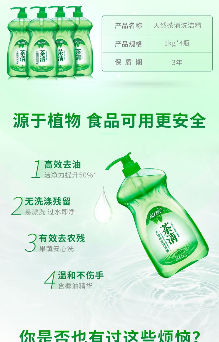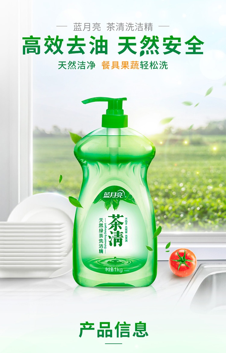 商品名称:蓝月亮茶清洗洁精套装:1kg/瓶*4 果蔬餐具清洗剂 洗涤灵 快速去油去农残 易冲洗无残留 天然安全 儿童可用