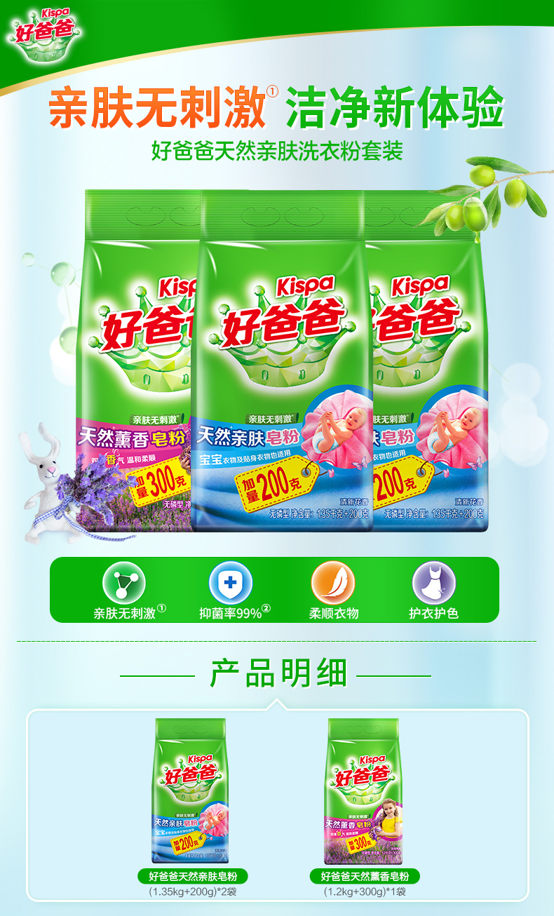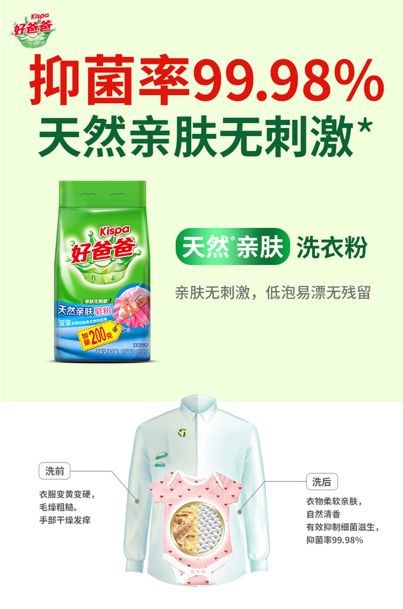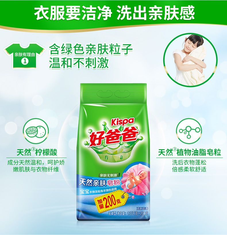 商品名称:【官方旗舰店】好爸爸洗衣粉Kispa 亲肤薰香洗衣粉9.1斤家庭装