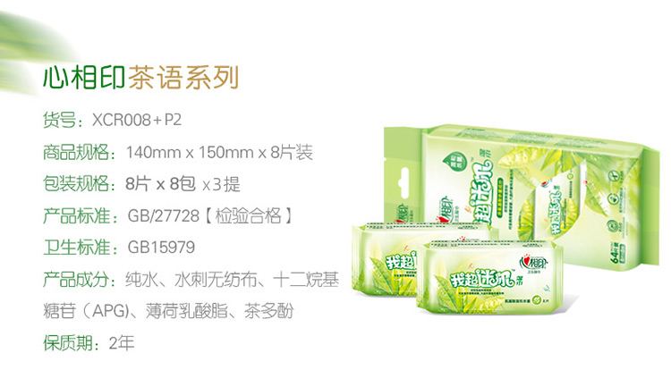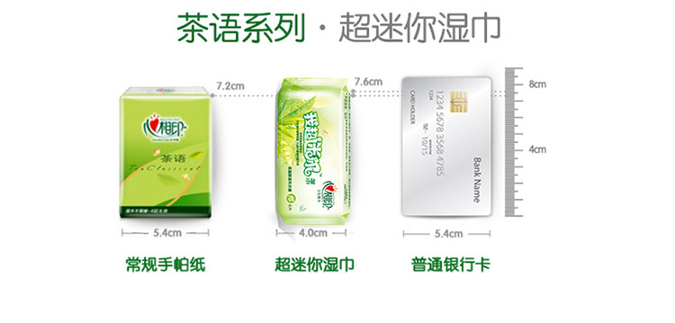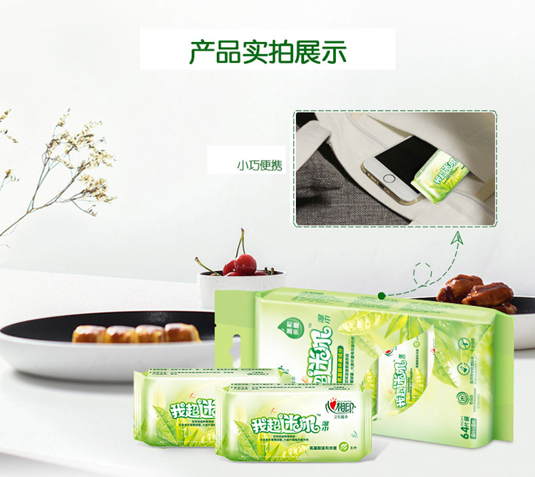 商品名称:心相印湿巾 茶语系列超迷你小包装 8片*8包*3提/袋便携随身装湿纸巾