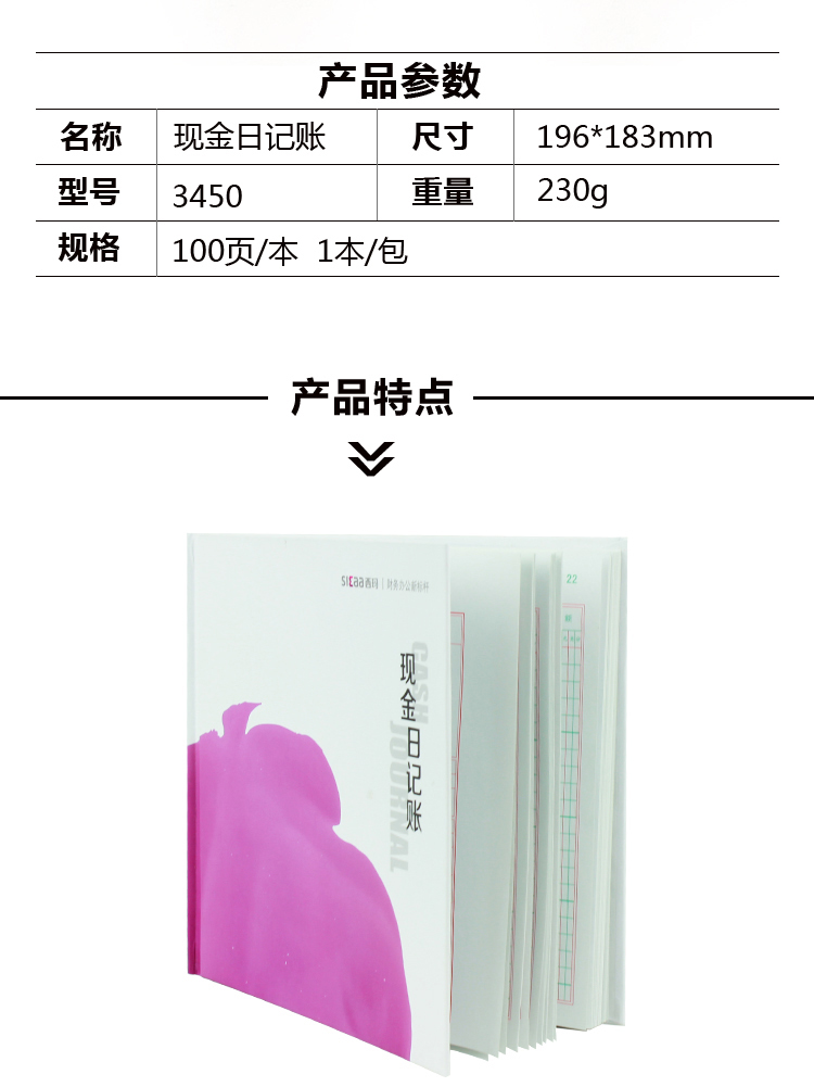 商品名称:西玛(SIMAA)现金日记账(24开)196*183mm 财务明细账会计手写记账本账簿账册 100页/本