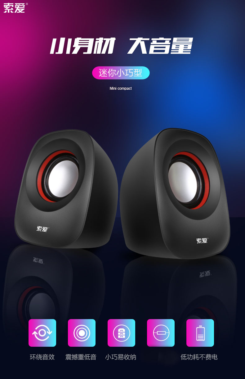 索爱(soaiy)SA-L3 音响 电脑迷你小音箱 笔记本电脑桌面有线低音炮