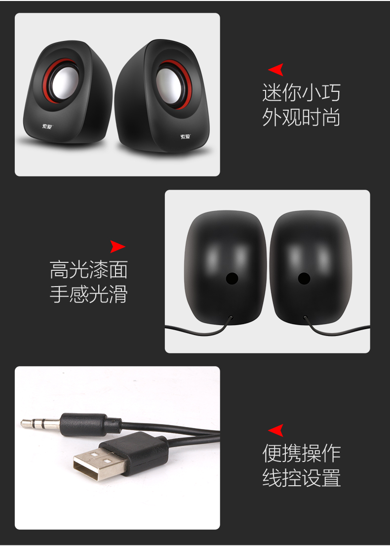 商品名称:索爱(soaiy)SA-L3 音响 电脑迷你小音箱 笔记本电脑桌面有线低音炮