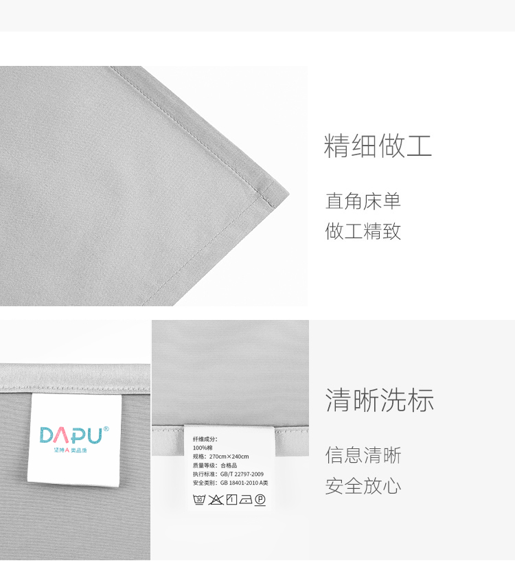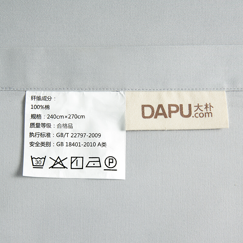 商品名称:大朴(DAPU)床单 A类床品 60支精梳纯棉缎纹纯色床单 大双人被单 银石灰 1.8米床 240*270cm