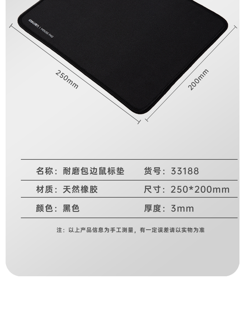 商品名称:得力(deli)250*200mm加厚耐磨包边办公游戏鼠标垫 办公用品