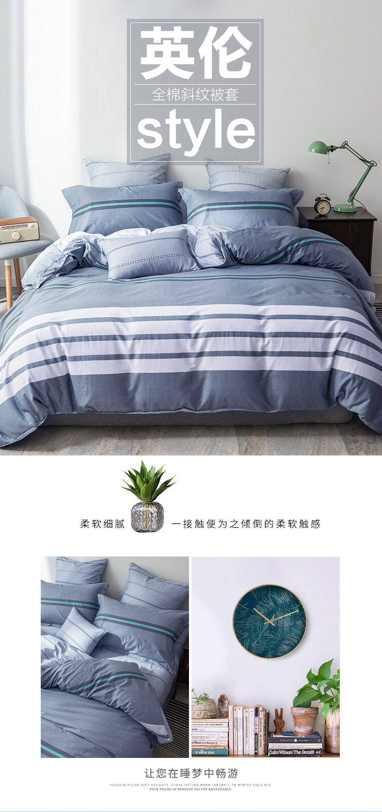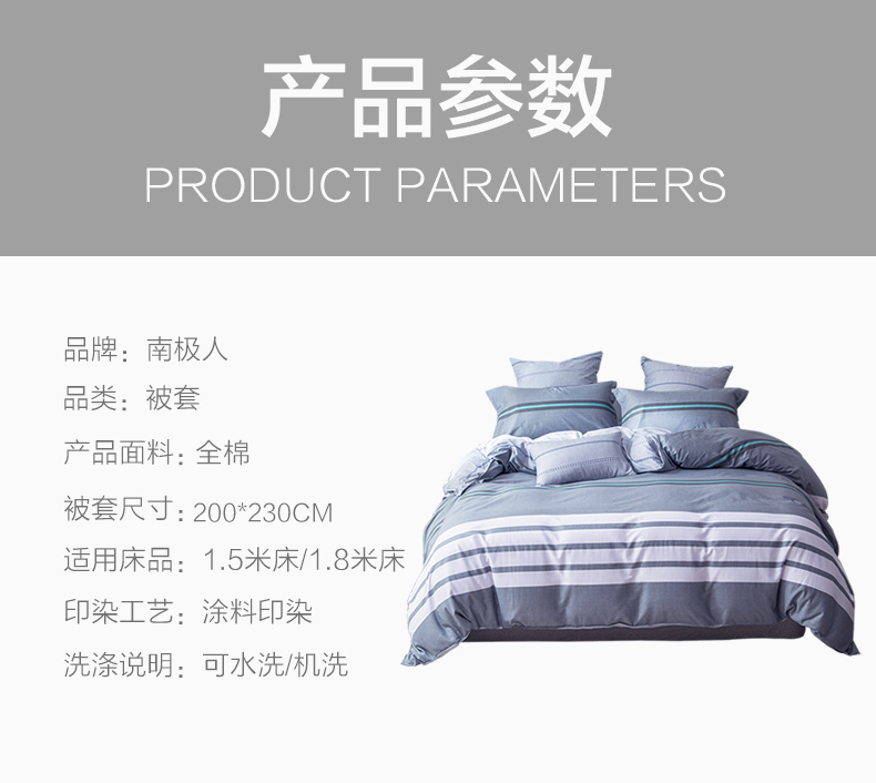 商品名称:南极人NanJiren 纯棉斜纹印花被套单件全棉被罩单件 200*230cm 1.5/1.8米双人被罩单件纯棉被套