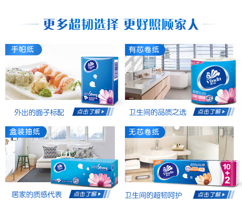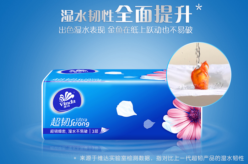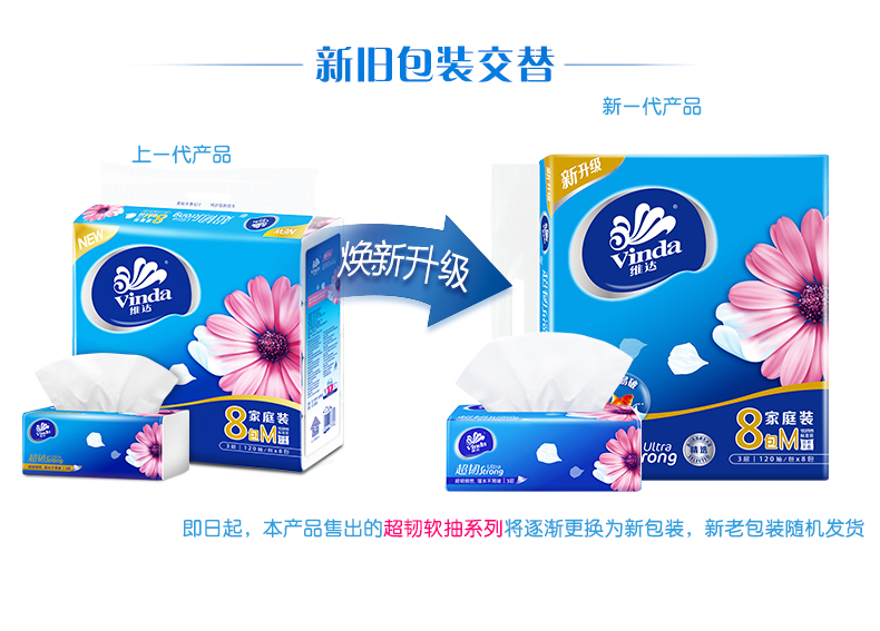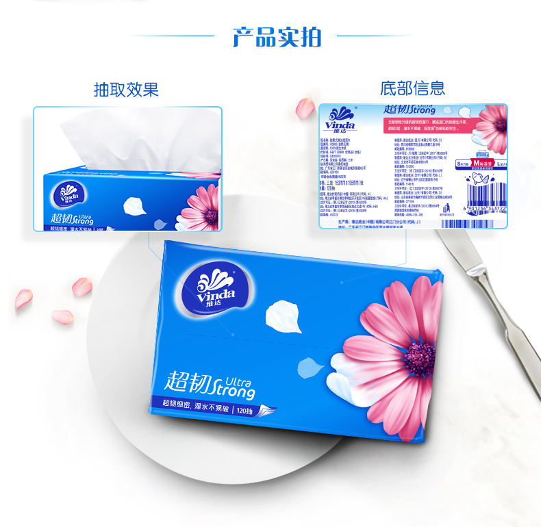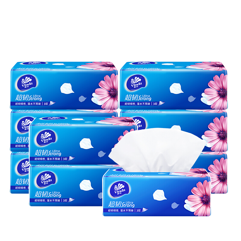 商品名称:维达(Vinda) 抽纸 超韧系列软抽3层120抽*8包(认准真M码 母婴可用)