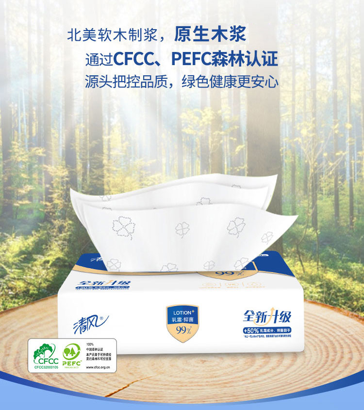 商品名称:清风 (APP)抽纸 Lotion 保湿因子 抑菌纸3层100抽*12包( 干湿两用 敏感肌适用 乳霜纸)(整箱售卖)