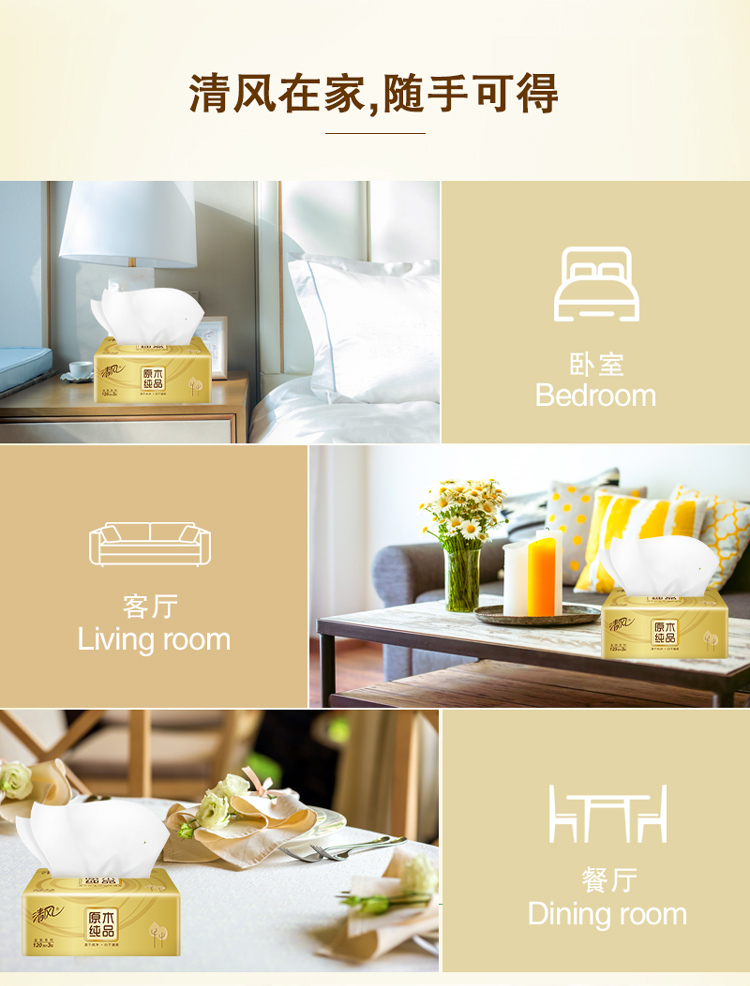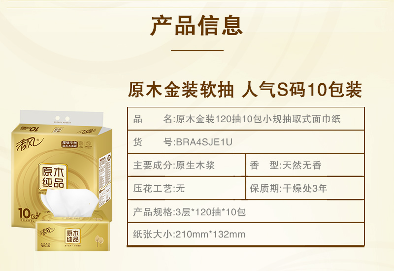 商品名称:清风(APP)抽纸 原木纯品金装系列 3层120抽软抽纸巾*10包(母婴可用 柔软厚实)(新老包装交替发货)