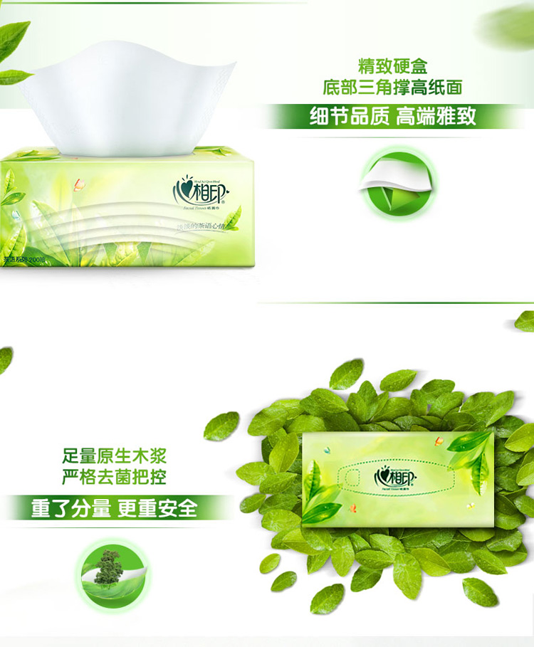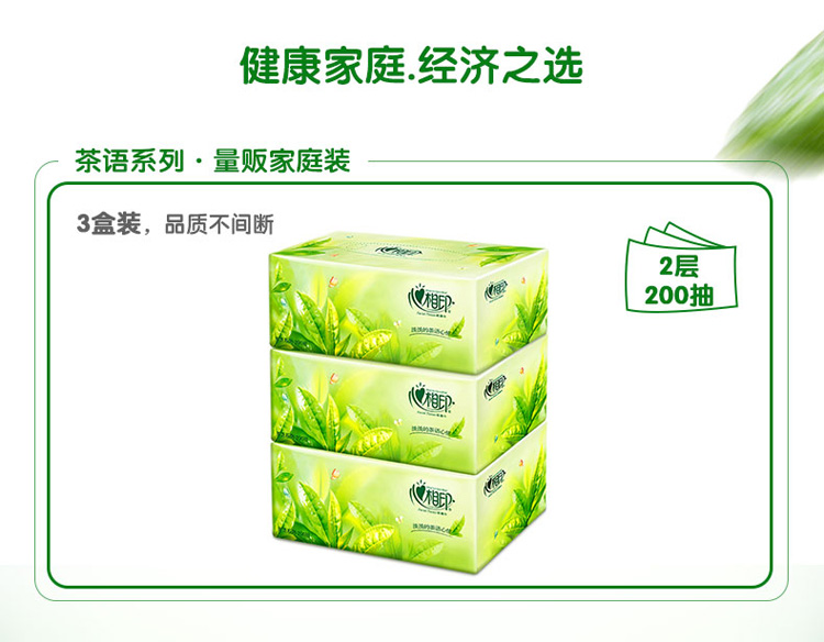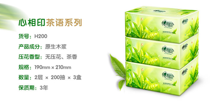 商品名称:心相印抽纸 茶语系列 盒抽2层200抽面巾纸*3盒