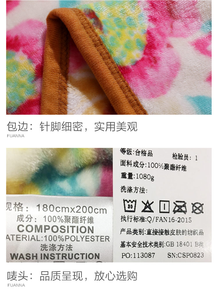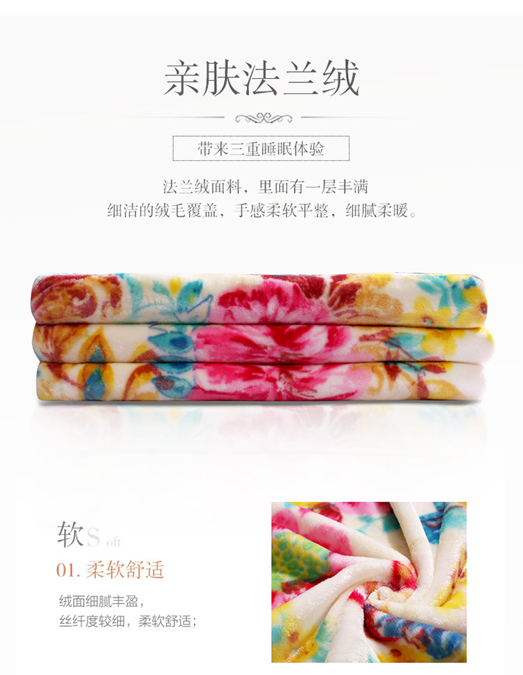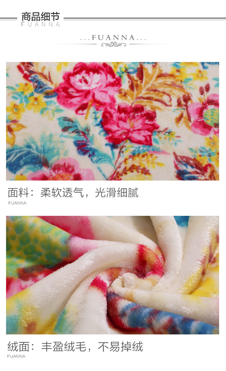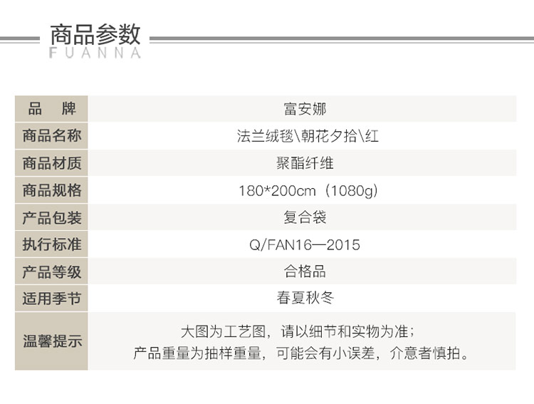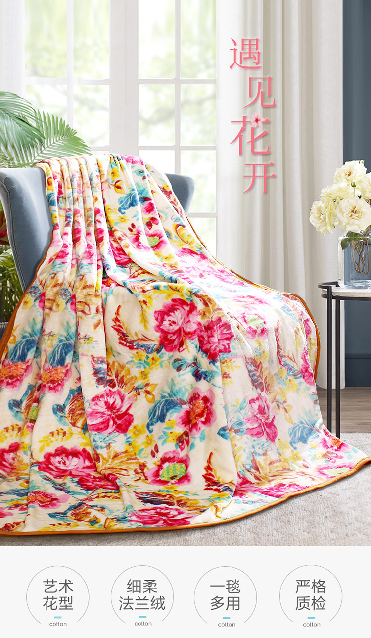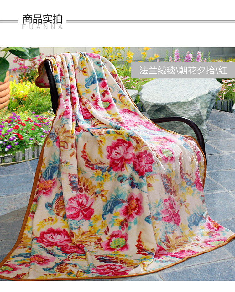 商品名称:富安娜家纺 毛毯保暖毯子午睡毯四季毯子双人盖毯被 保暖床单冬天 法兰绒毯 朝花夕拾 1.8*2米 红色