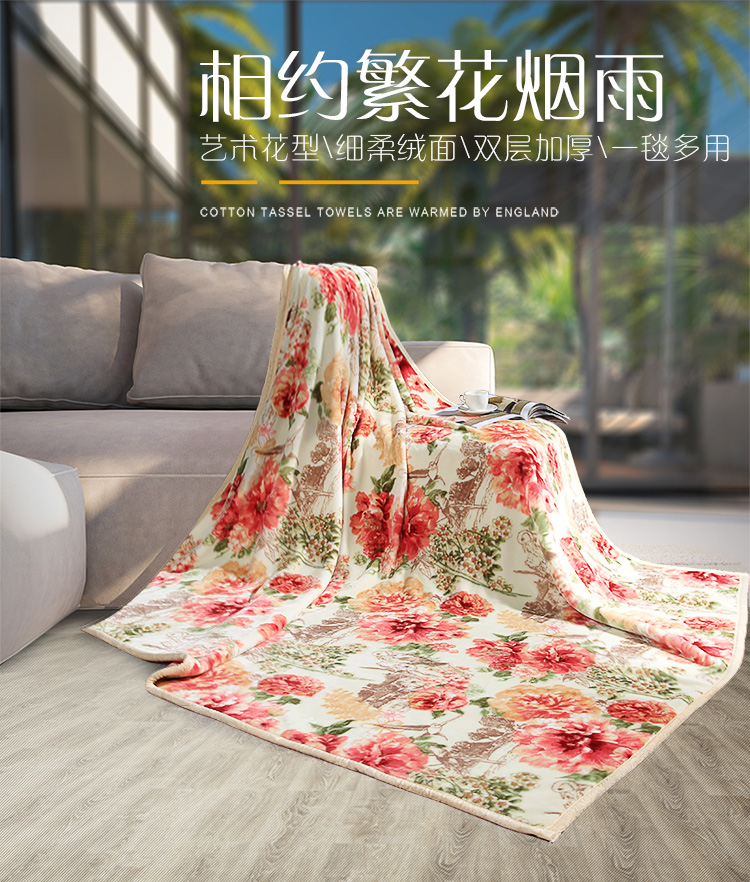 富安娜家纺家居用品 加厚毯子 秋冬加厚毛毯被双人盖毯午休毯保暖床单冬天 双层舒柔毯四季狂想 红 1.8*2m