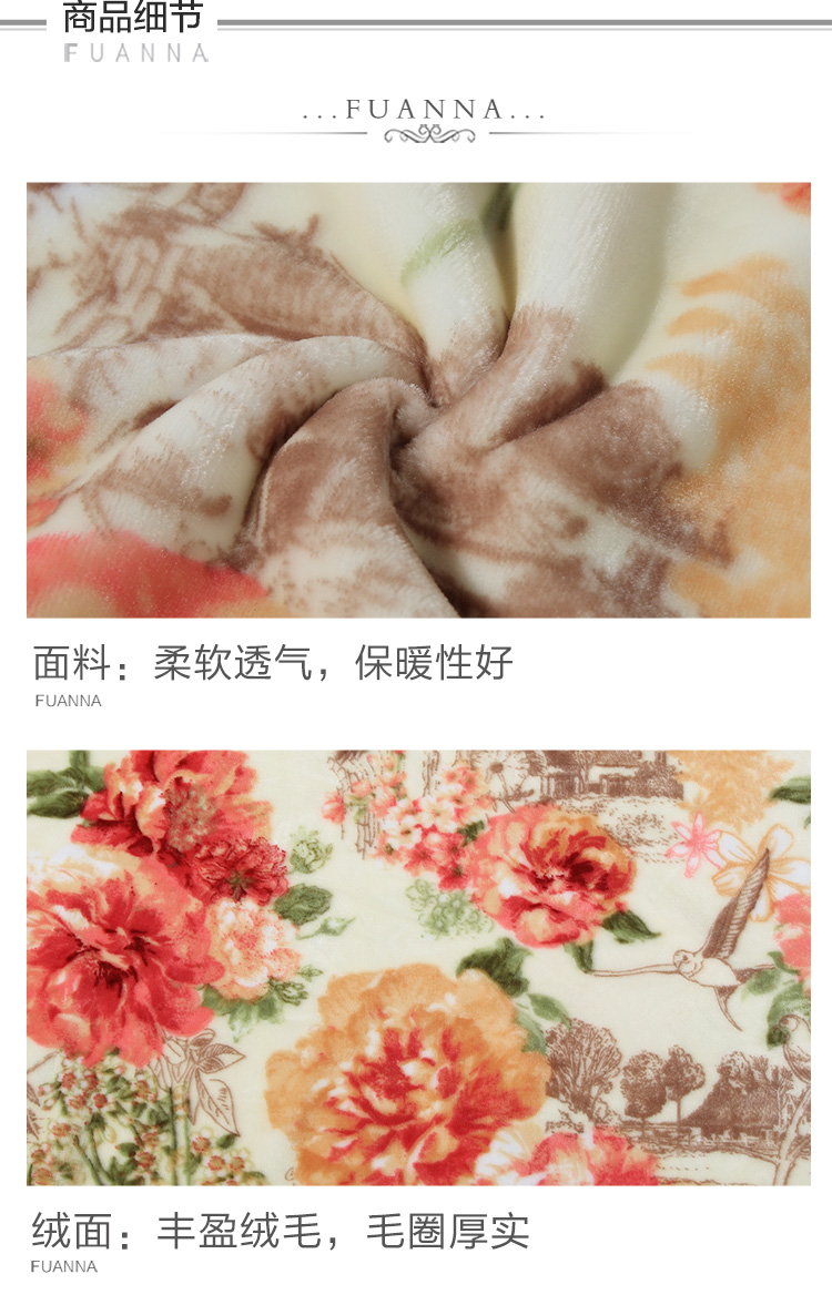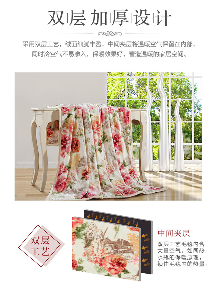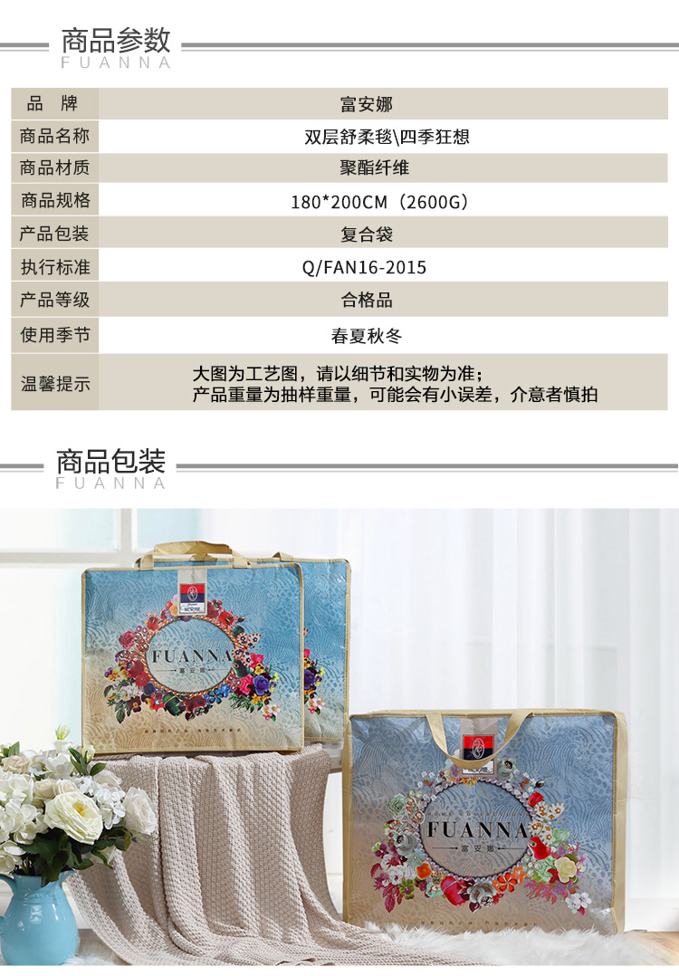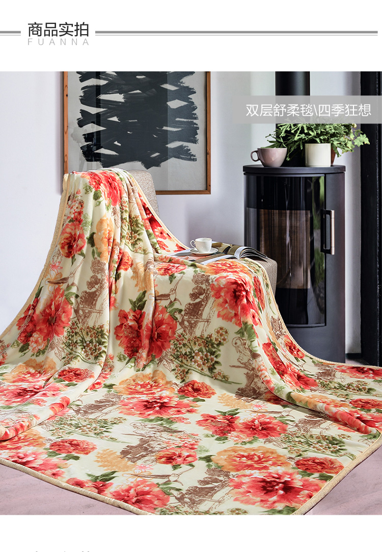 商品名称:富安娜家纺家居用品 加厚毯子 秋冬加厚毛毯被双人盖毯午休毯保暖床单冬天 双层舒柔毯四季狂想 红 1.8*2m