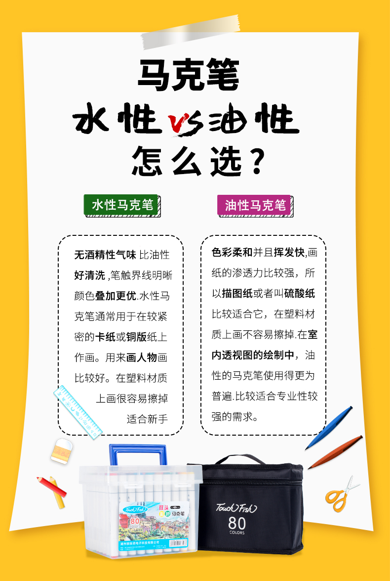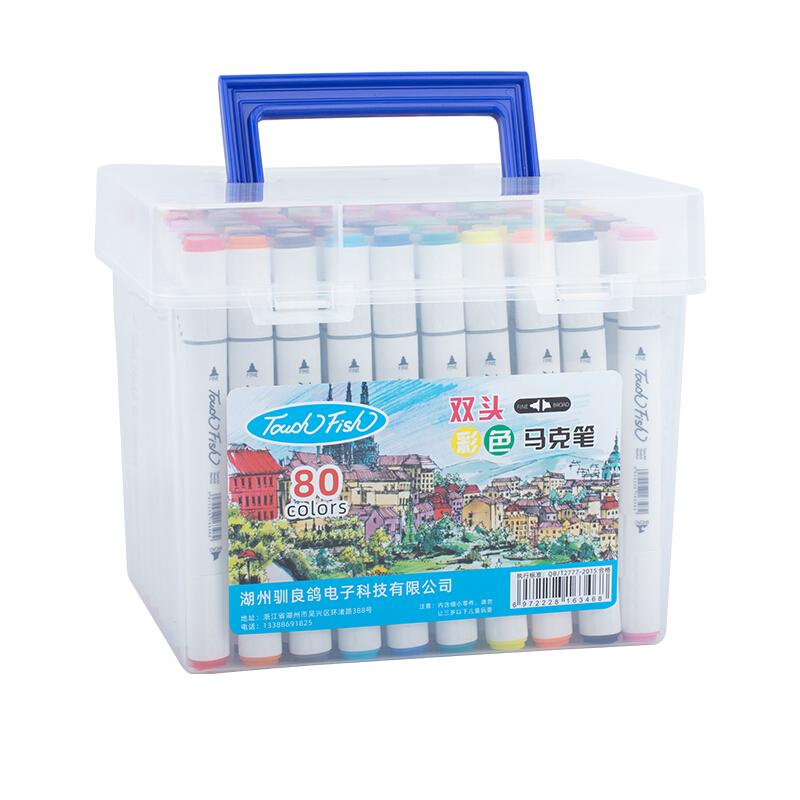 商品名称:Touch马克笔套装水性学生水彩笔80色双头儿童绘画画笔套装带底座礼盒装 学生80色 水性三角白杆礼盒装