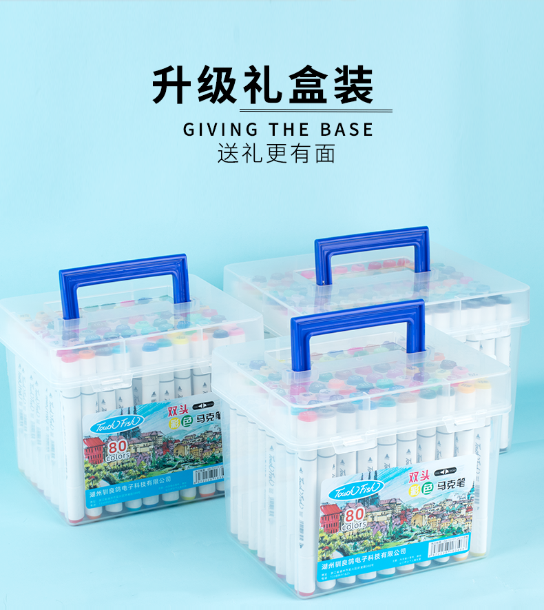 Touch马克笔套装水性学生水彩笔80色双头儿童绘画画笔套装带底座礼盒装 学生80色 水性三角白杆礼盒装