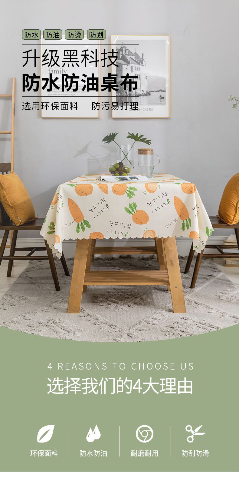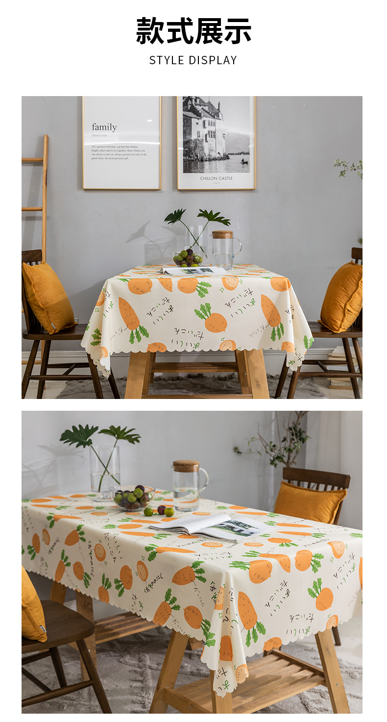 商品名称:诺罗 桌布防水防油免洗餐桌布书桌ins学生北欧长方形家用茶几垫布艺 橘色胡萝卜 桌布130cm*180cm/1片