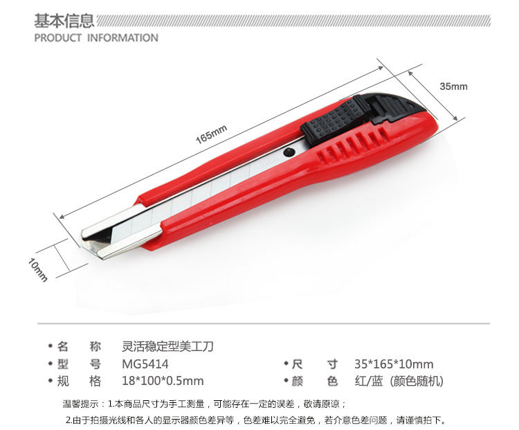 商品名称:广博(GuangBo) 美工刀 MG5414 灵活稳定型美工刀 颜色随机 美工刀