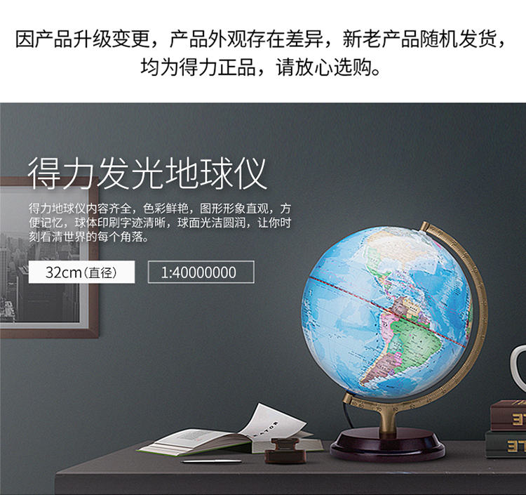 得力(deli)LED灯地球仪 Φ32cm木座金属架 办公家居摆设 办公用品 3036