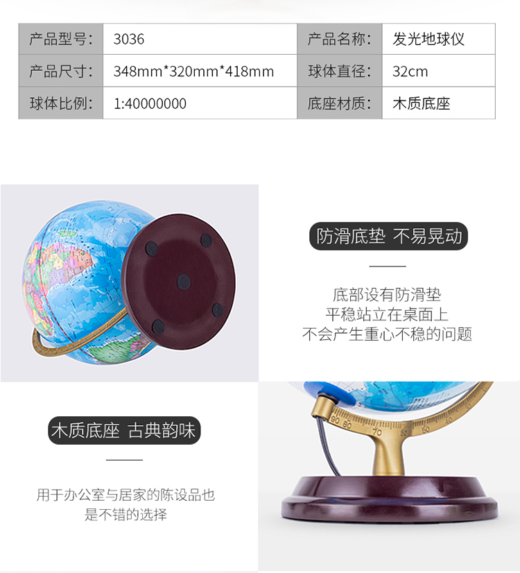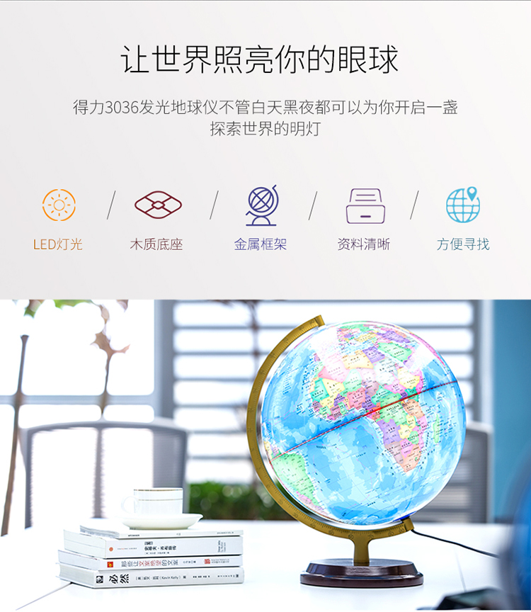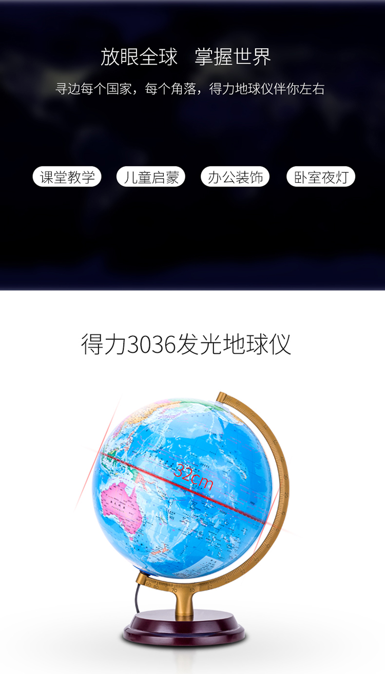 商品名称:得力(deli)LED灯地球仪 Φ32cm木座金属架 办公家居摆设 办公用品 3036