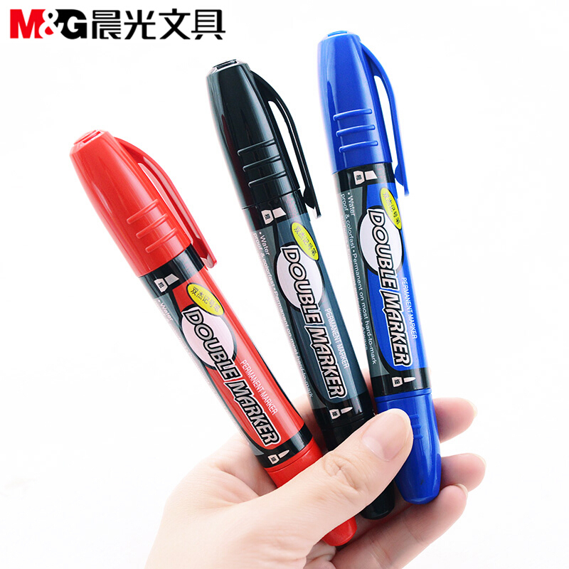 晨光(M&G)粗细杆双头多用物流油性记号笔绘画勾线笔描线笔光盘笔12支装 MG2110蓝色(粗杆大双头)