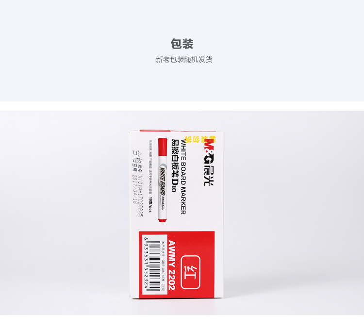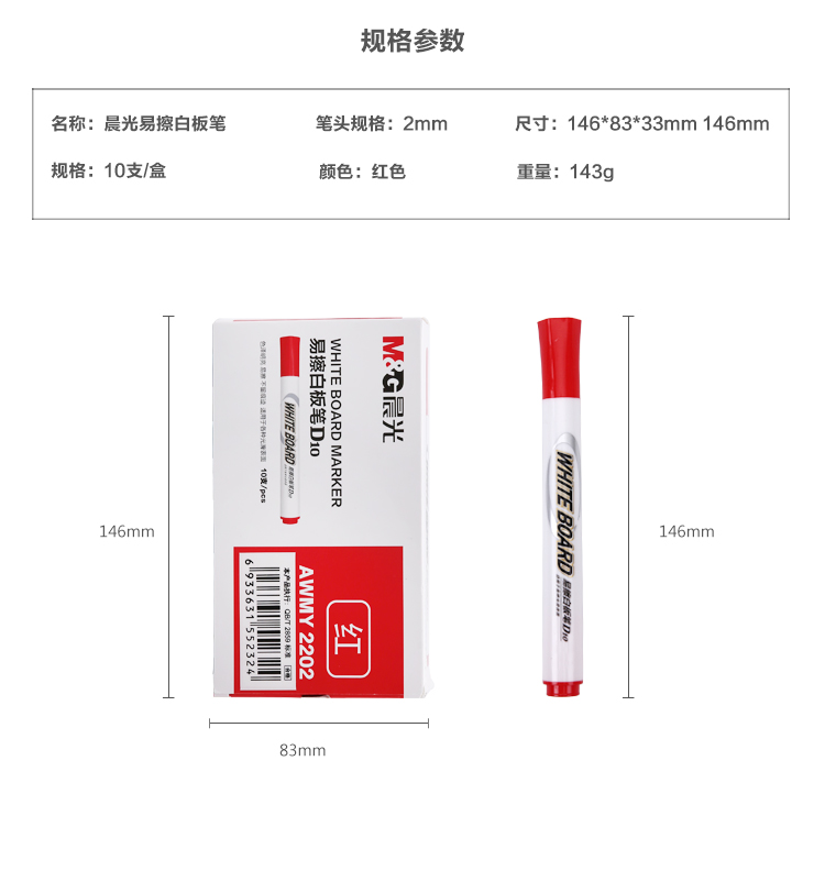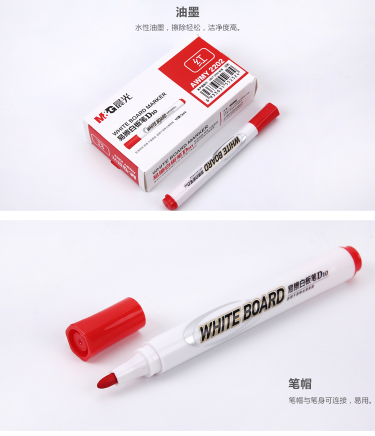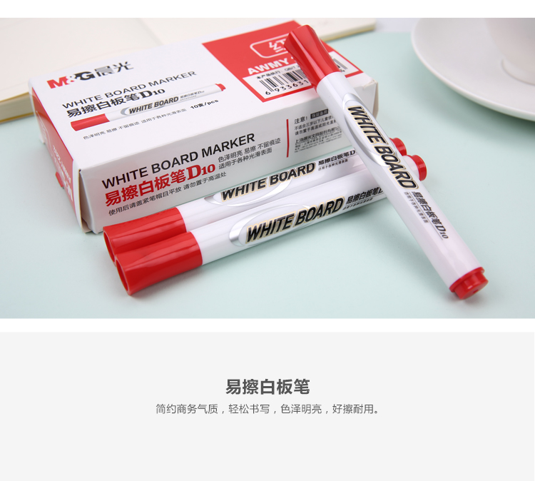 商品名称:晨光(M&G)文具红色可擦白板笔 单头办公会议笔 易擦记号笔 10支/盒AWMY2202