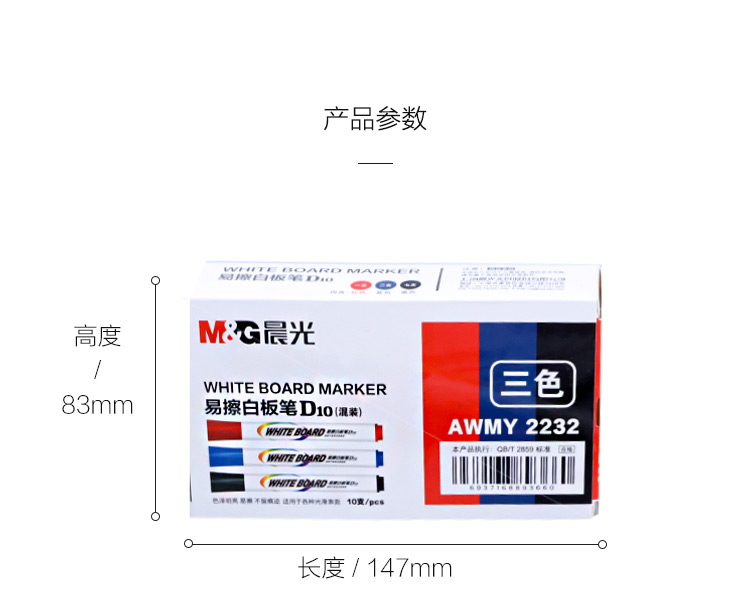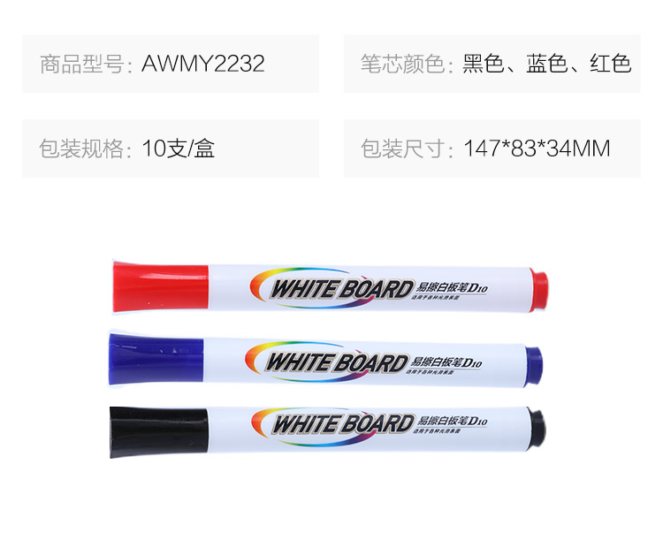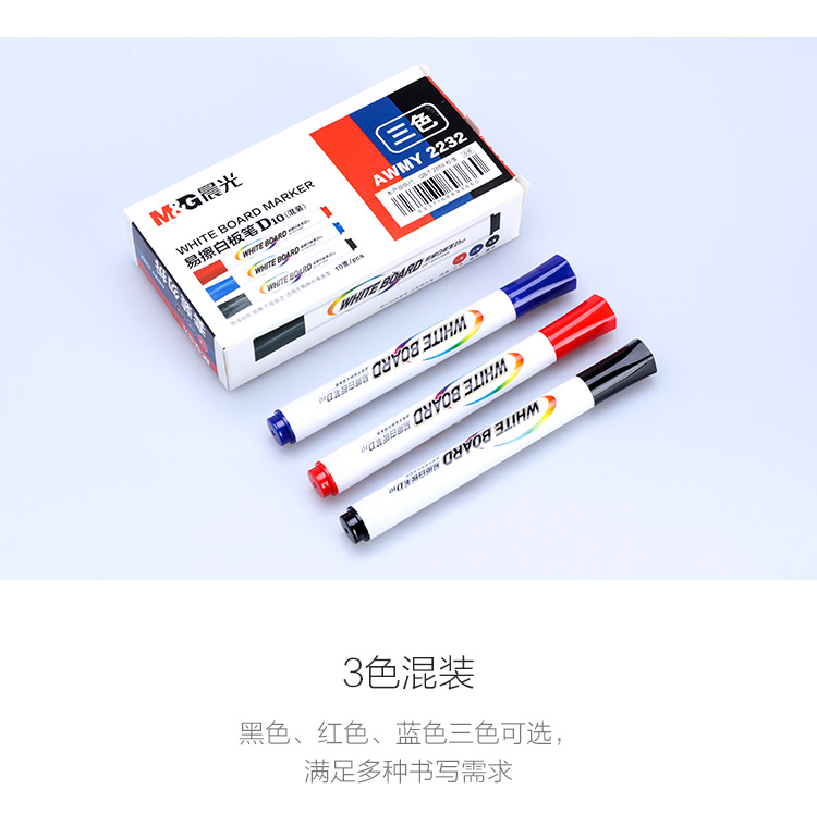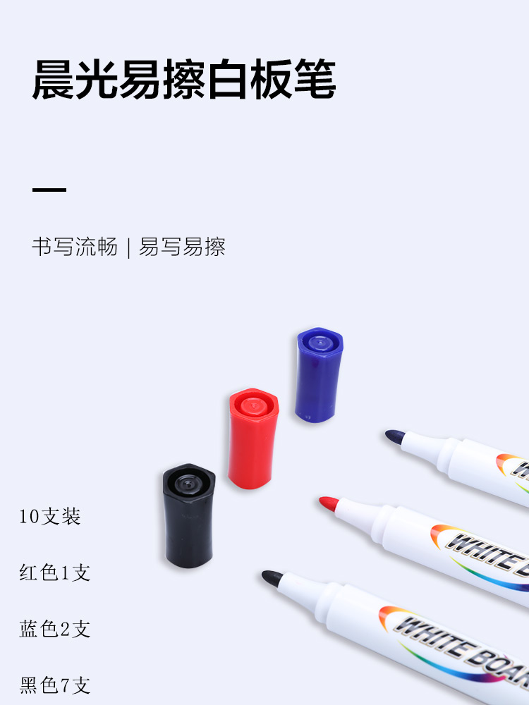 商品名称:晨光(M&G)文具可擦白板笔套装 单头易擦办公会议笔(7黑+2蓝+1红) 10支/盒AWMY2232