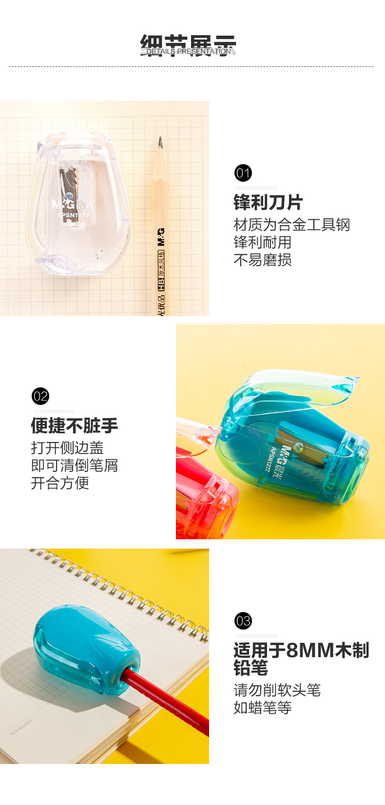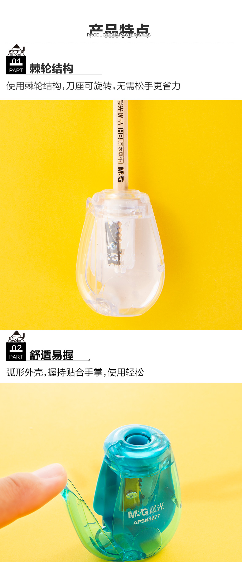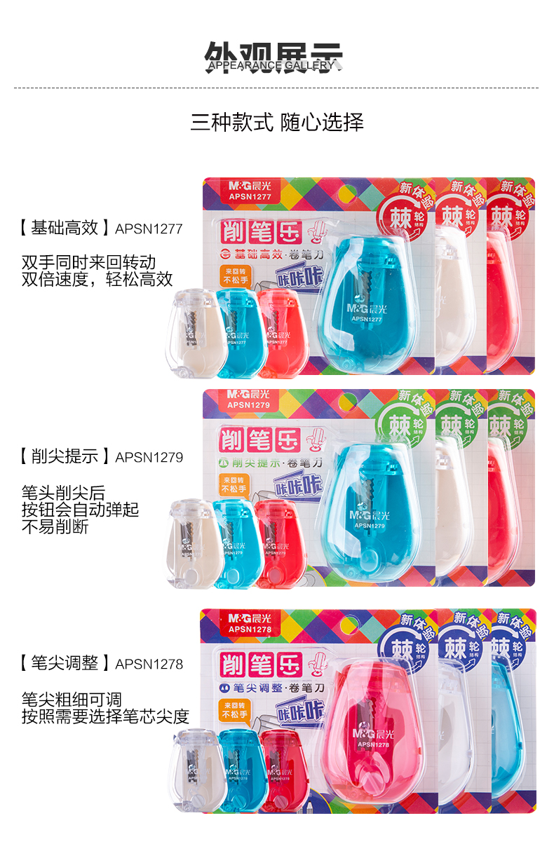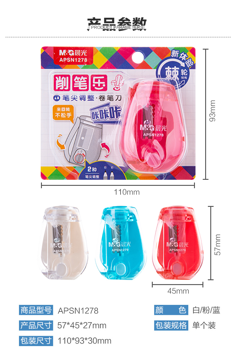 商品名称:晨光(M&G)文具学生手动卷笔刀 铅笔削笔器 笔尖调整双倍速度转笔刀 单个装颜色随机APSN1278