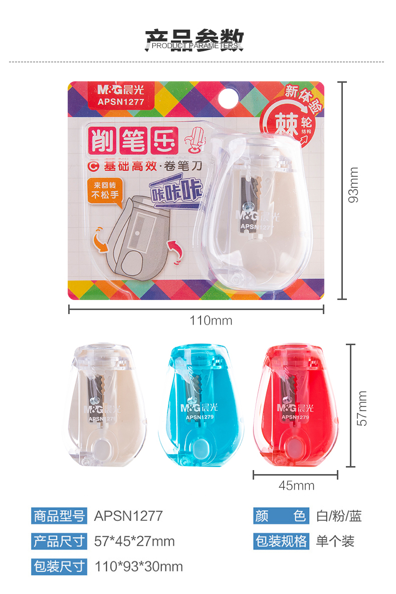 商品名称:晨光(M&G)文具学生手动卷笔刀 铅笔削笔器 基础高效双倍速度转笔刀 单个装颜色随机APSN1277