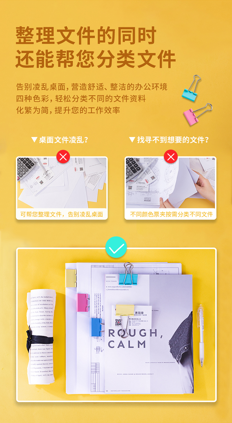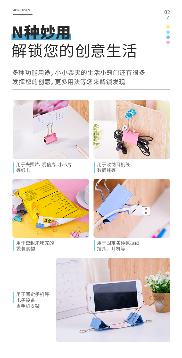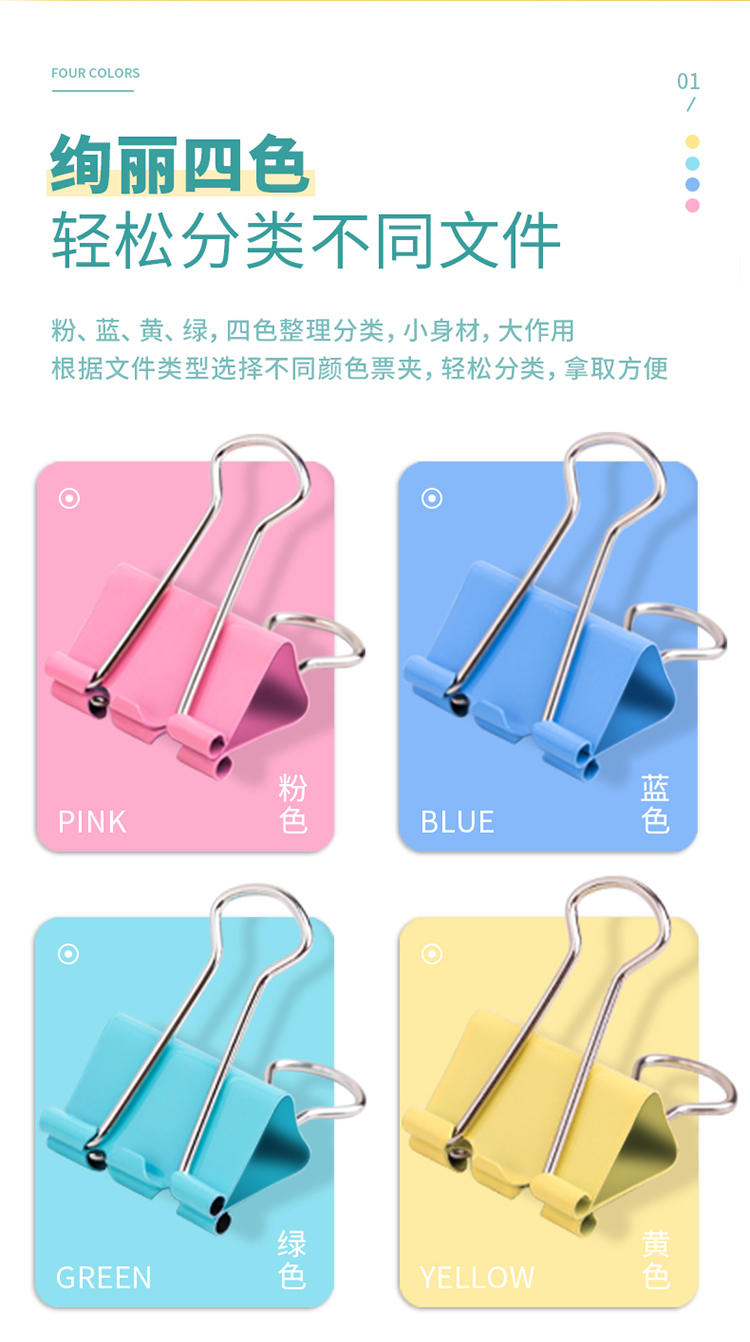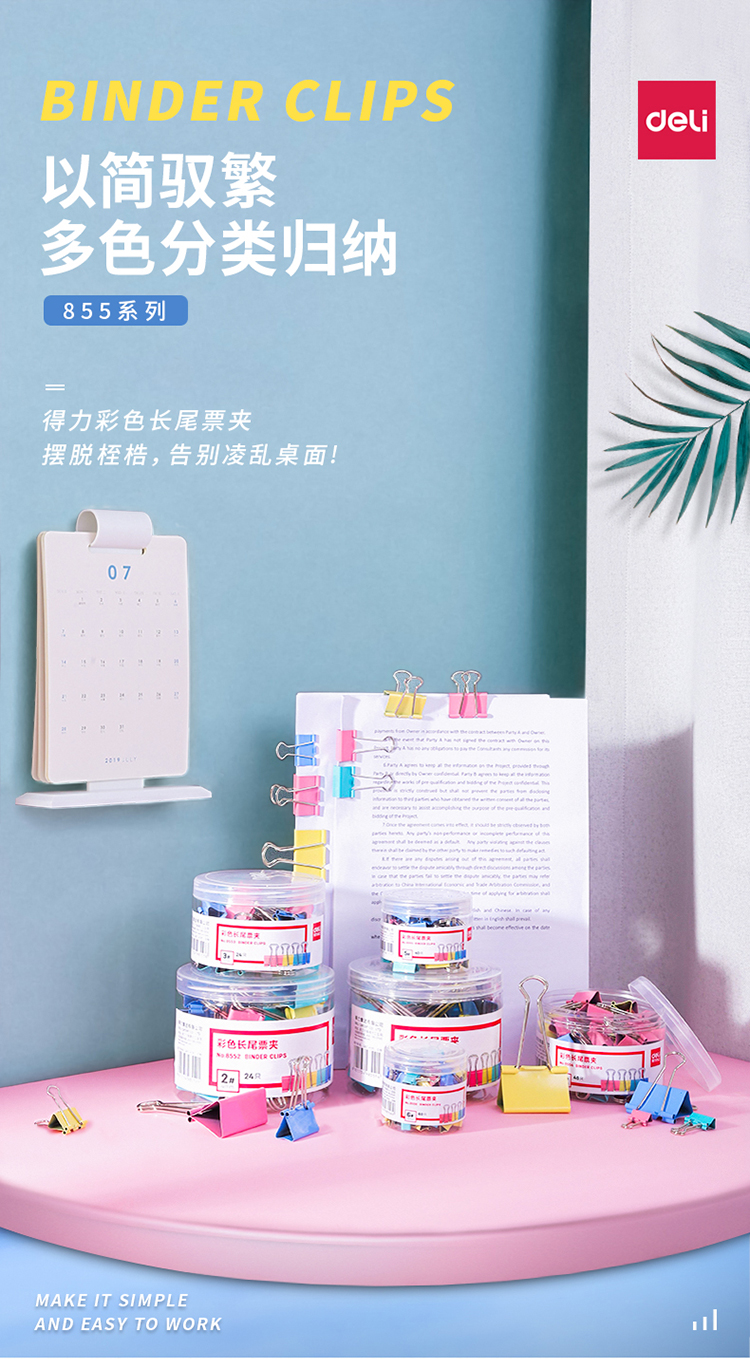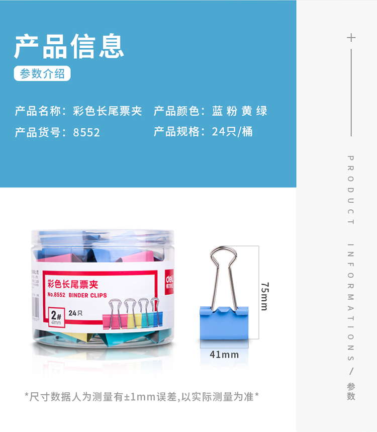 商品名称:得力(deli)24只41mm彩色长尾夹票夹 2#金属燕尾夹票据夹子 办公用品 8552