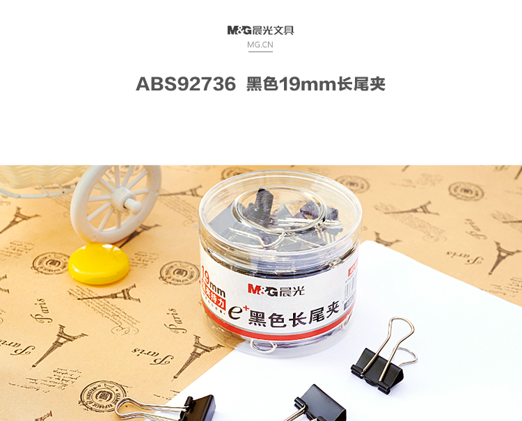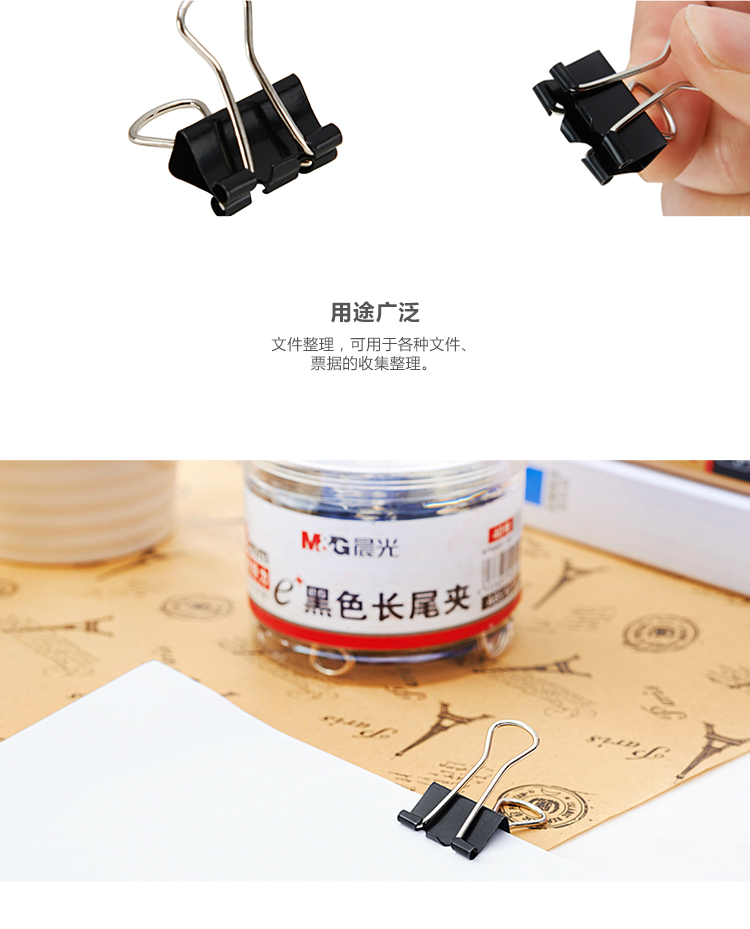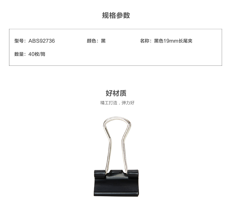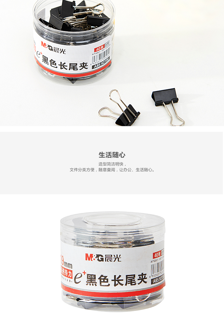 商品名称:晨光(M&G)文具19mm黑色长尾夹 金属票据夹 Eplus系列办公燕尾夹 40只/罐ABS92736
