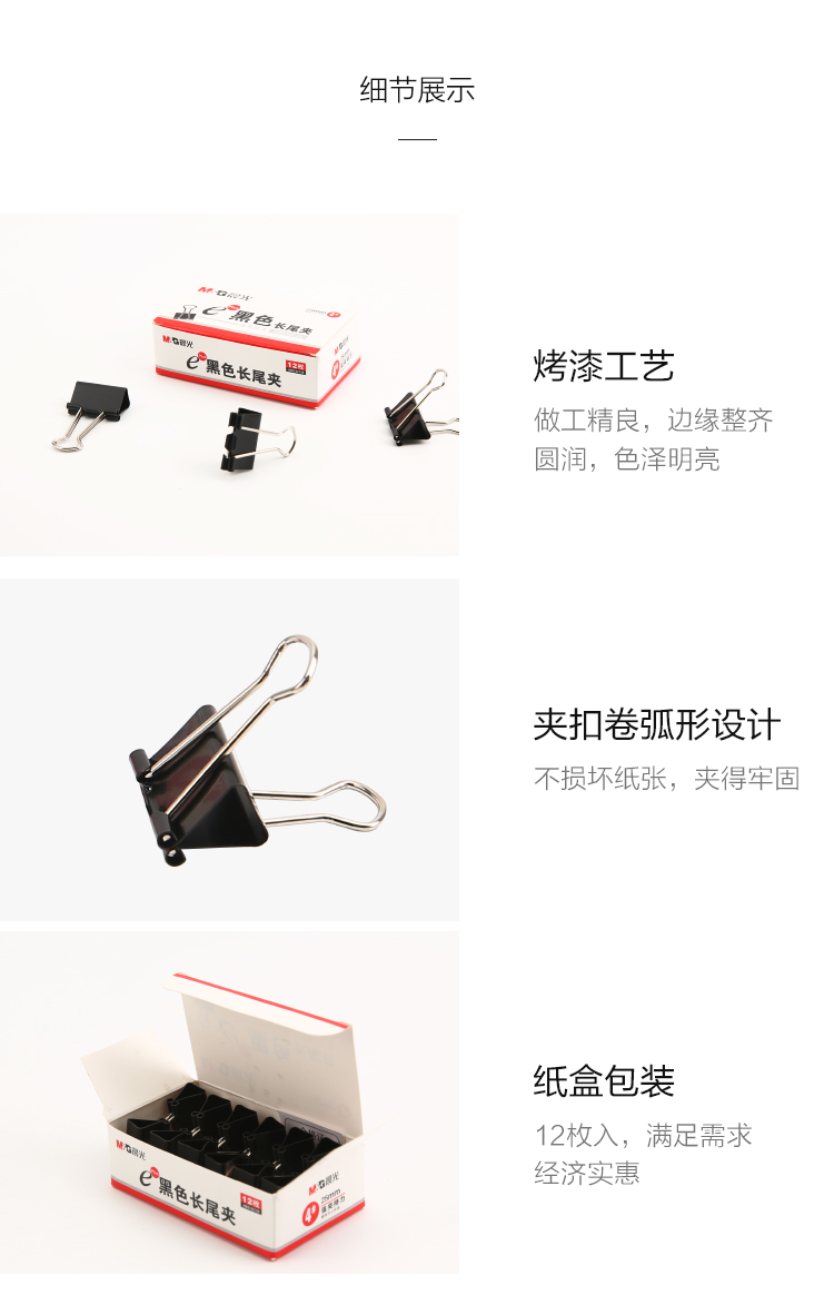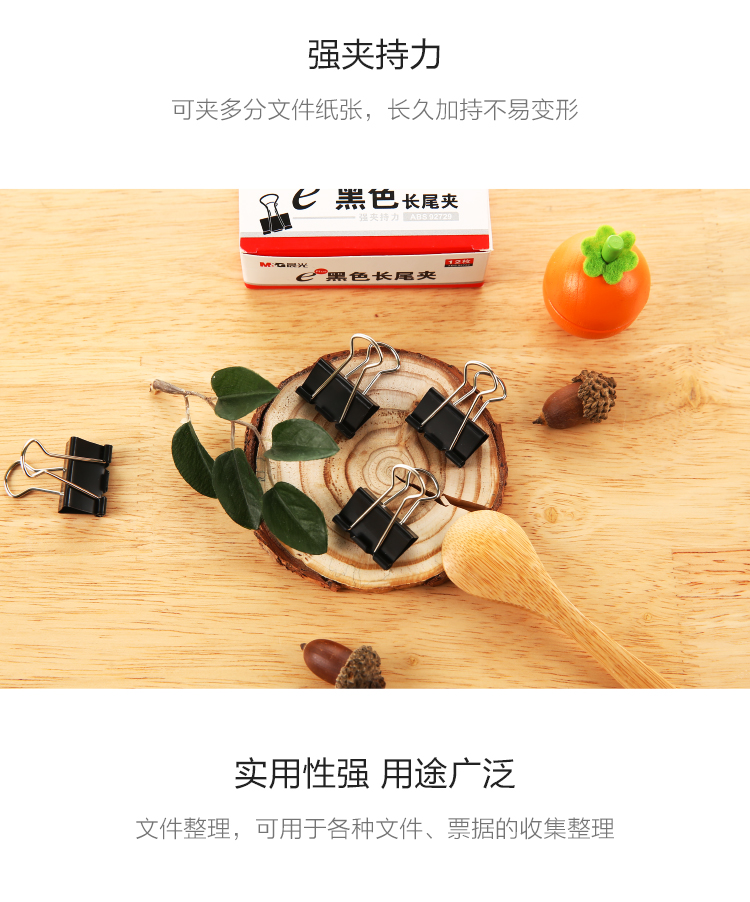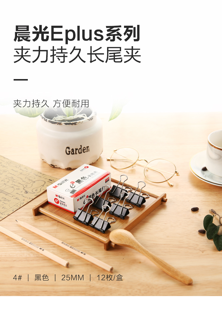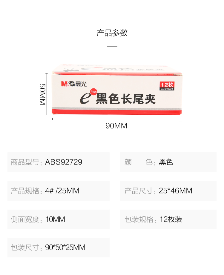 商品名称:晨光(M&G)文具4#黑色长尾夹 25mm办公用品金属票据夹 E-plus系列燕尾夹 12个装ABS92729