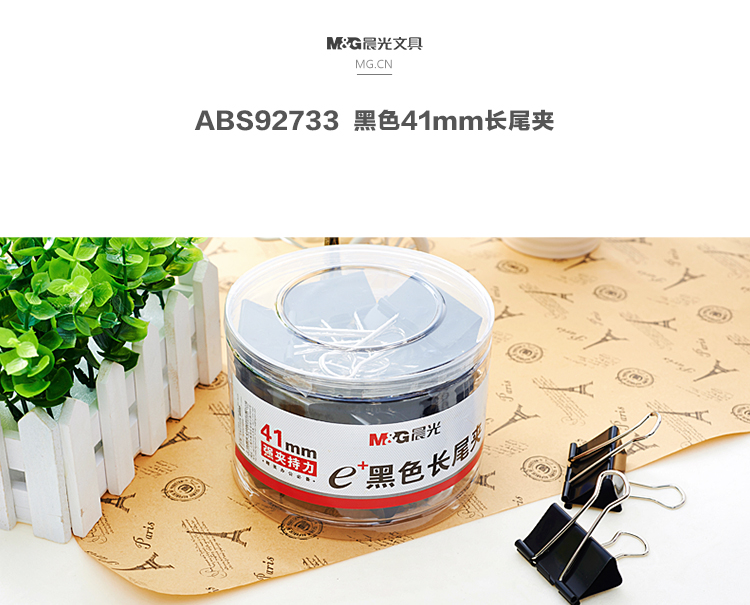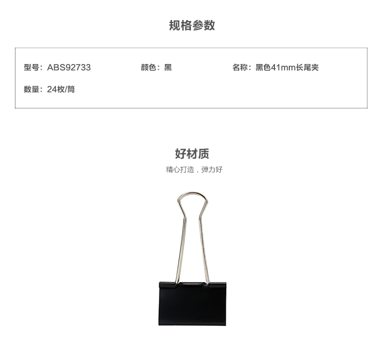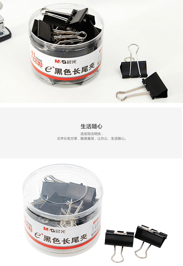 商品名称:晨光(M&G)文具41mm黑色长尾夹 金属票据夹 Eplus系列办公燕尾夹 24只/罐ABS92733