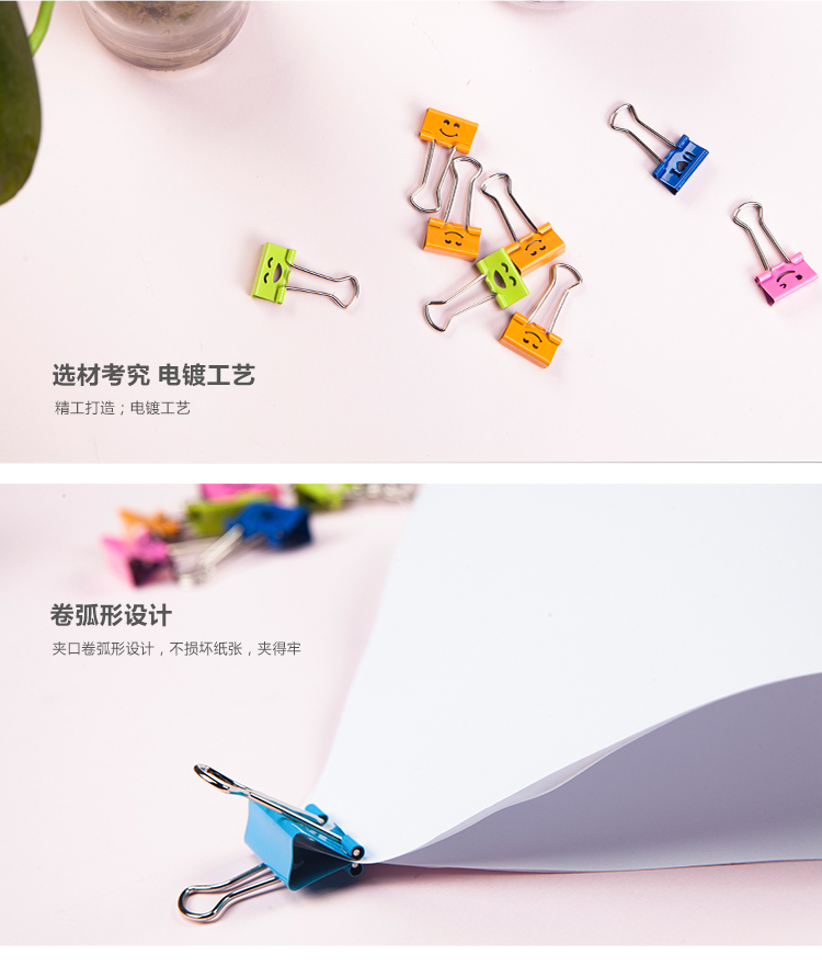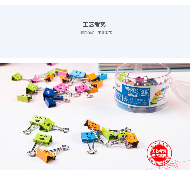 商品名称:晨光(M&G)文具25mm彩色可爱笑脸长尾夹 金属票据夹 办公用品燕尾夹 48个装ABS92703