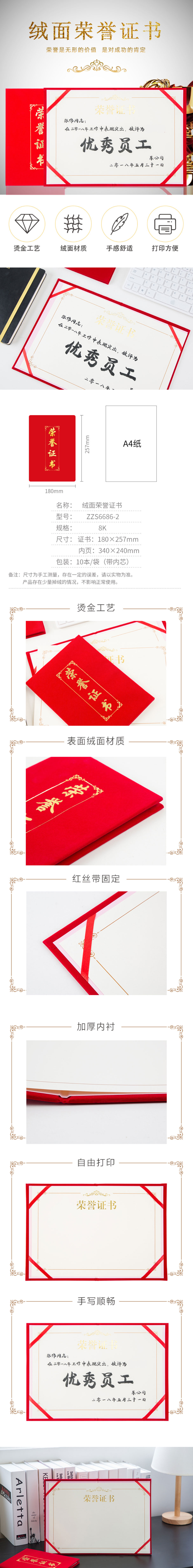 商品名称:广博(GuangBo)8K绒面荣誉证书外壳附带内芯10本装ZZS6686-2