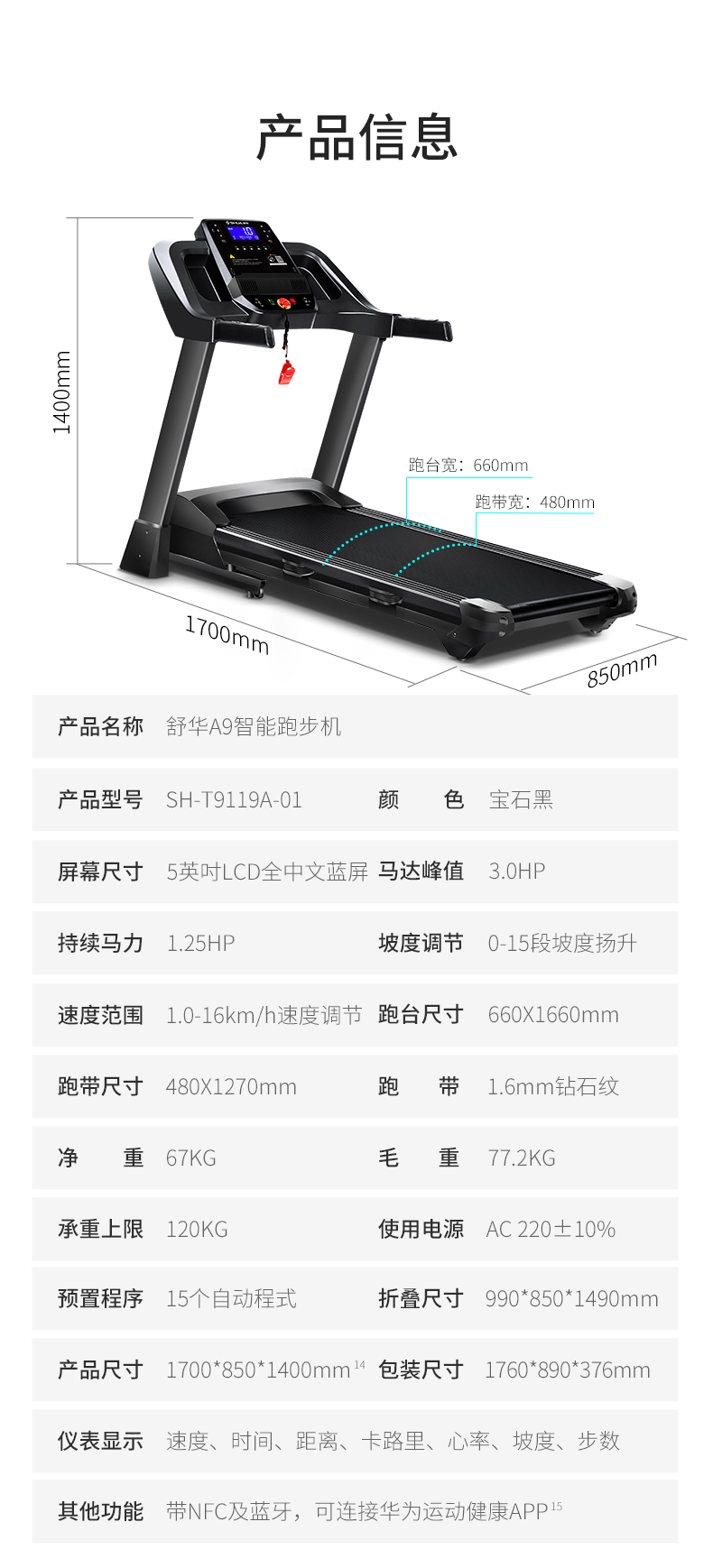 商品名称:舒华(SHUA)A9家用智能可折叠跑步机华为DFH认证产品(支持HUAWEI HiLink)SH-T9119A-01 ZS