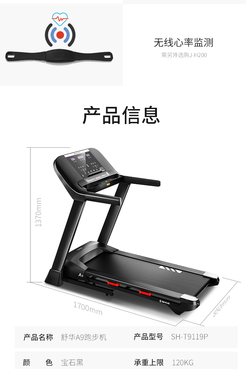 商品名称:舒华(SHUA) SH-T9119P家用可折叠智能跑步机支持华为运动健康APP ZS